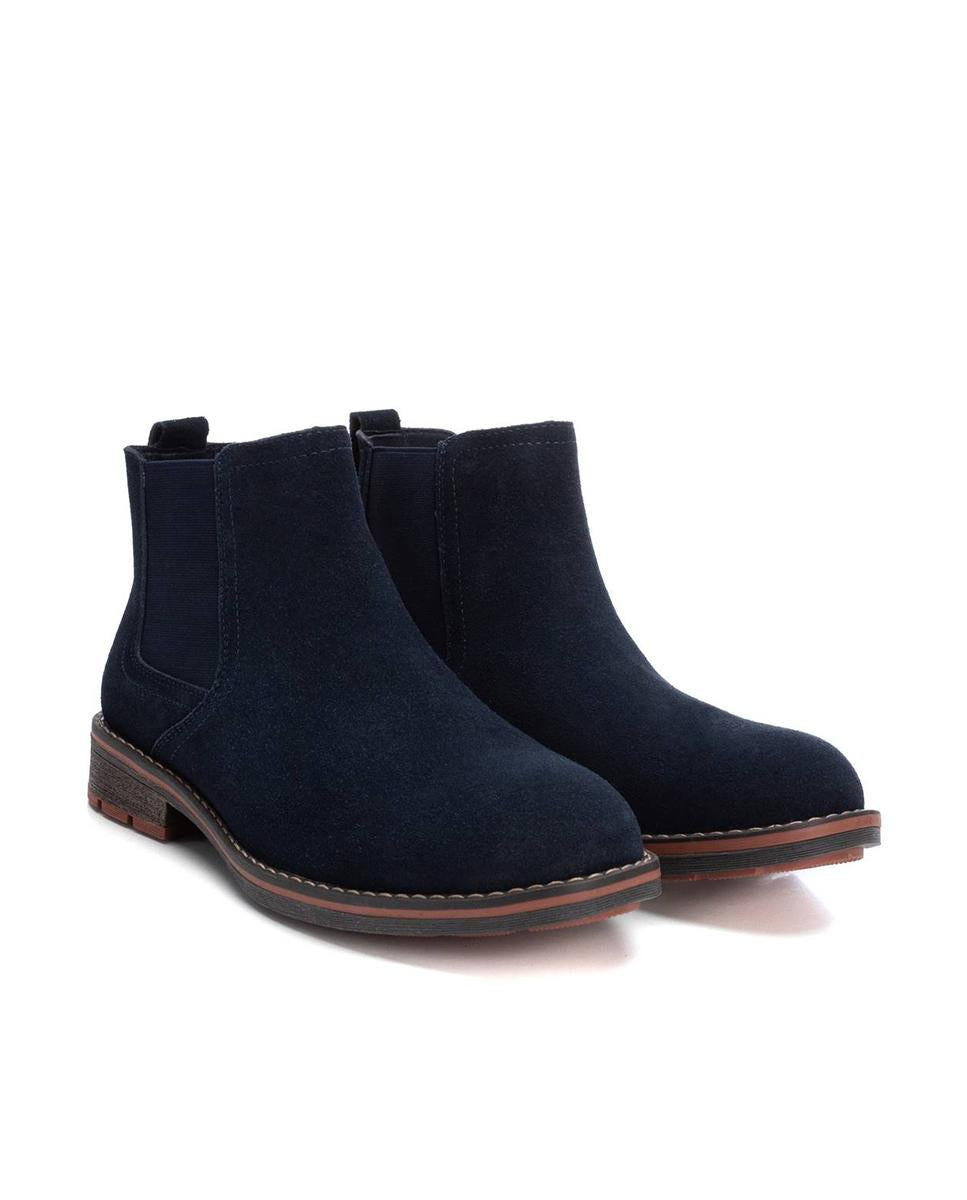 Estos botines Chelsea de XTI para hombre destacan por su diseño atemporal con un toque moderno. Confeccionados en serraje azul marino, combinan elegancia y versatilidad. Su punta redonda y elásticos laterales garantizan comodidad y fácil calce. El tacón bajo de 2 cm con efecto madera añade distinción. Perfectos para looks formales o casuales, son un básico imprescindible