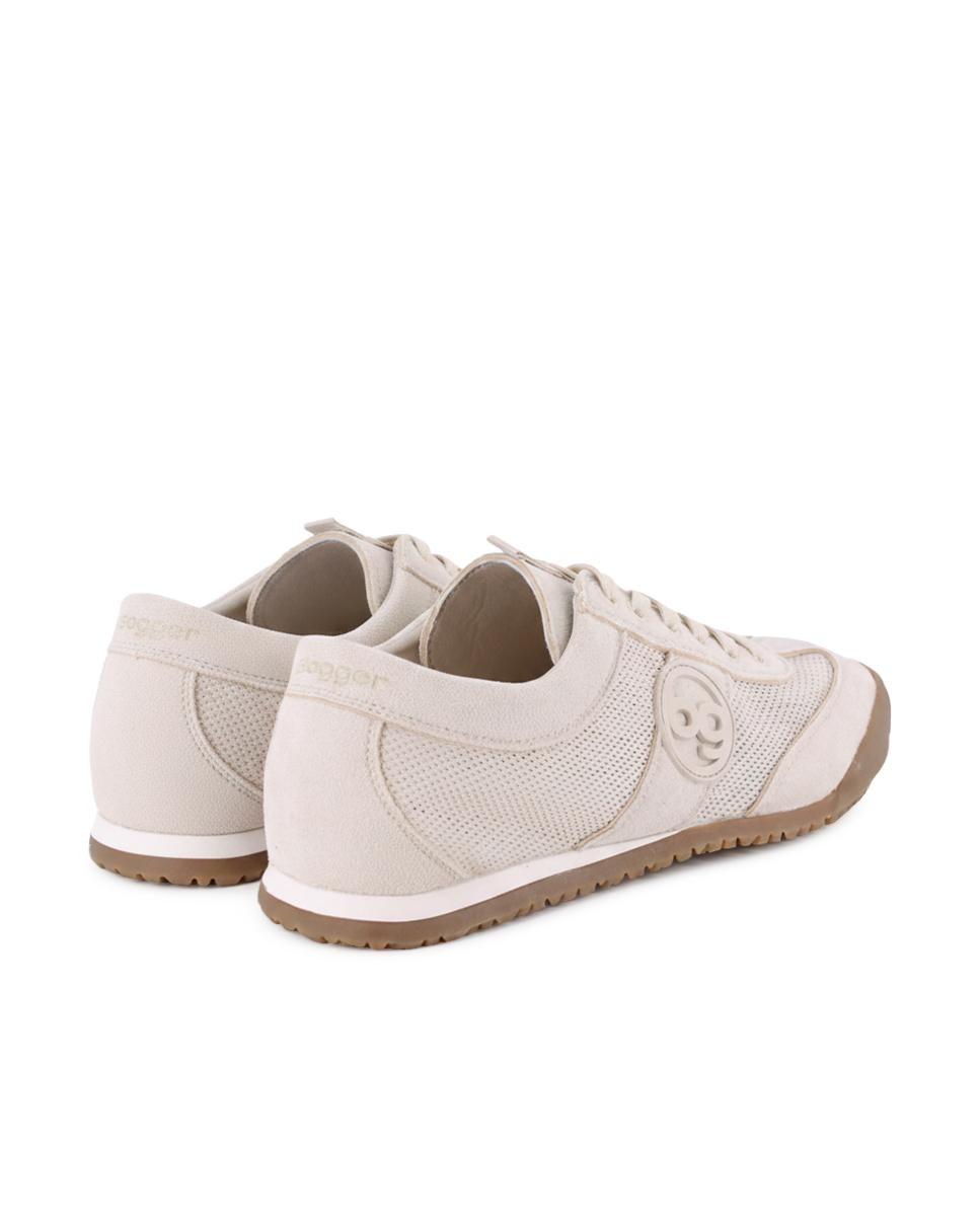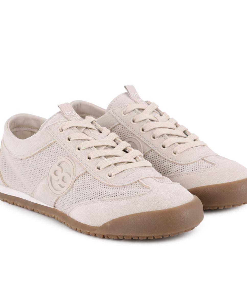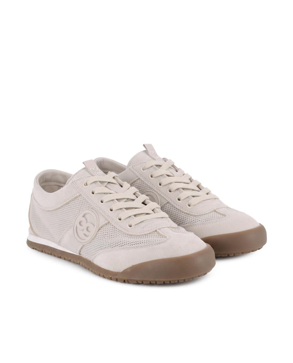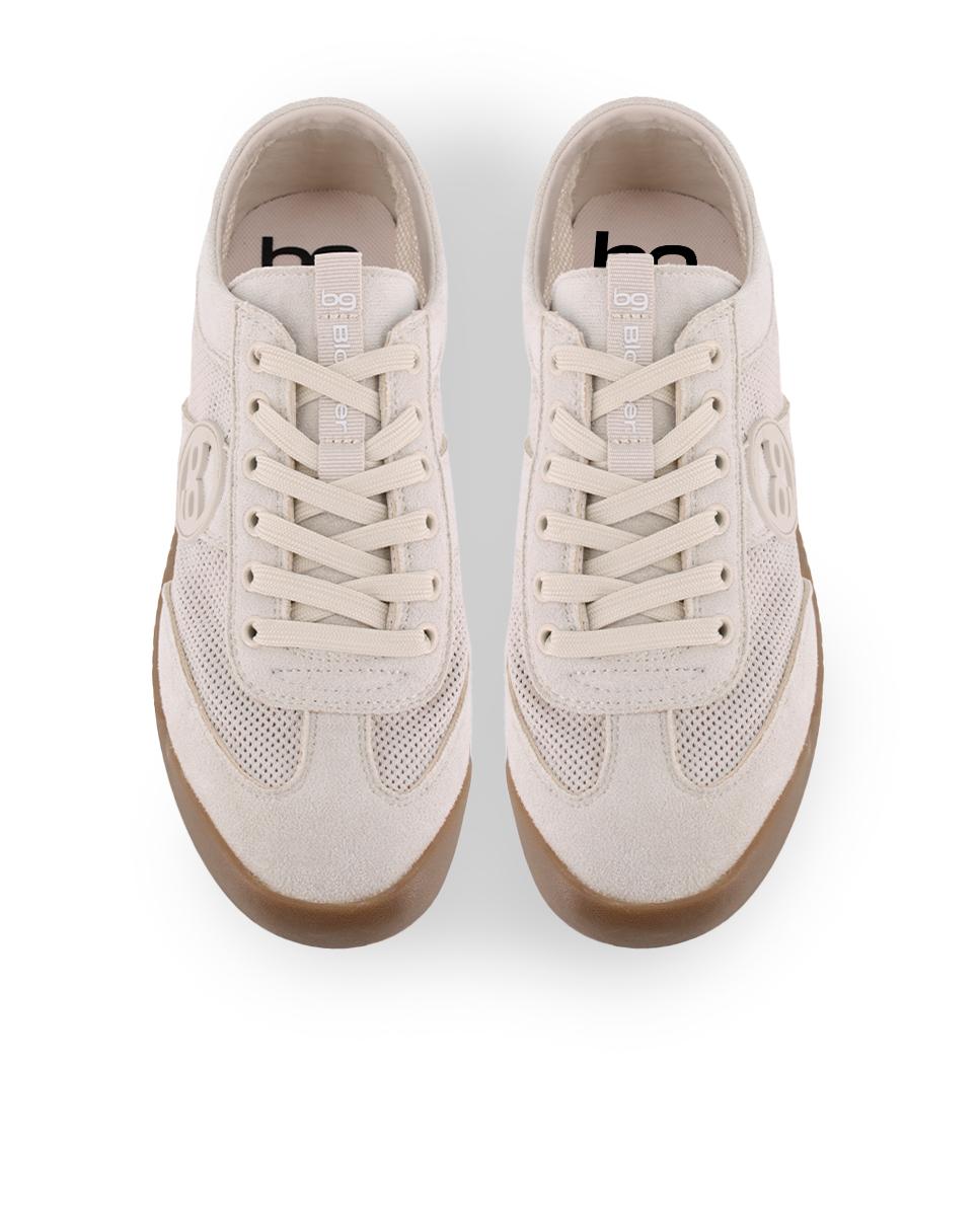 Zapatillas estilo retro en piel y malla sintética en color beige. Un diseño ligero y actual con cierre de cordones, piso plano de 1 cm de altura y suela de goma para mayor agarre. Incorporan forro interior en material sintético y plantilla acolchada en textil, ofreciendo una pisada cómoda y práctica para el día a día.