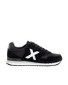 Zapatillas Munich Dash para hombre, con diseño retro running y estilo urbano. Combinan materiales sintéticos y serraje en la parte superior para un look deportivo y versátil. Su suela de goma de 3 cm proporciona comodidad y durabilidad. Diseño en negro con detalles blancos, ideal para un estilo minimalista y atemporal. Cierre con cordones.