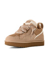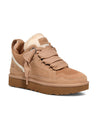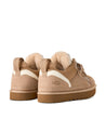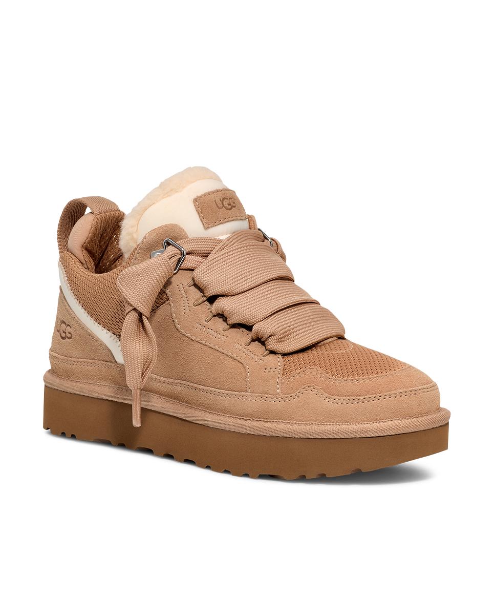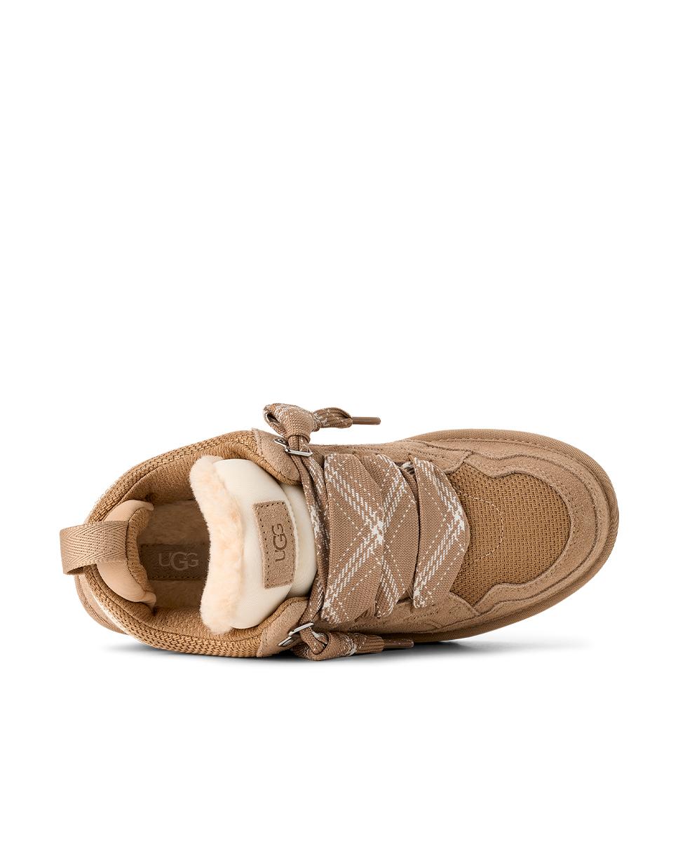 Las zapatillas Lowmel de UGG evocan la nostalgia californiana con un diseño retro y materiales sostenibles. Empeine de ante y malla balística reciclada en tono beige, con lengüeta acolchada XL y cuello cómodo. Suela de EVA de caña de azúcar y plantilla moldeada para máxima comodidad. Detalles como cordones reciclados y forro ecológico completan este modelo ideal para climas cálidos.