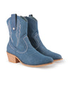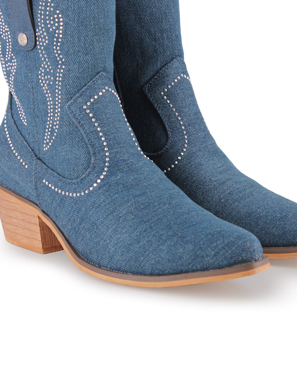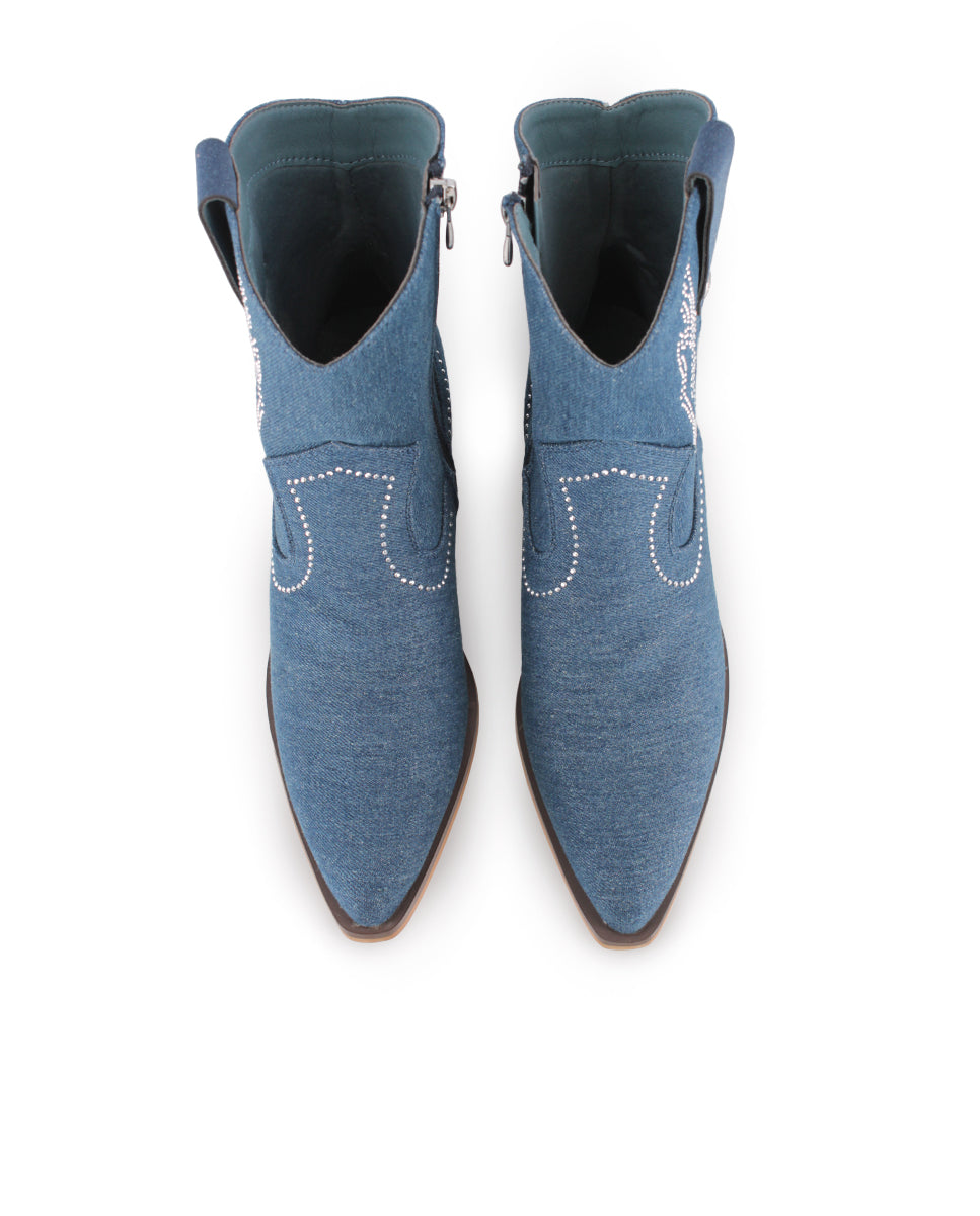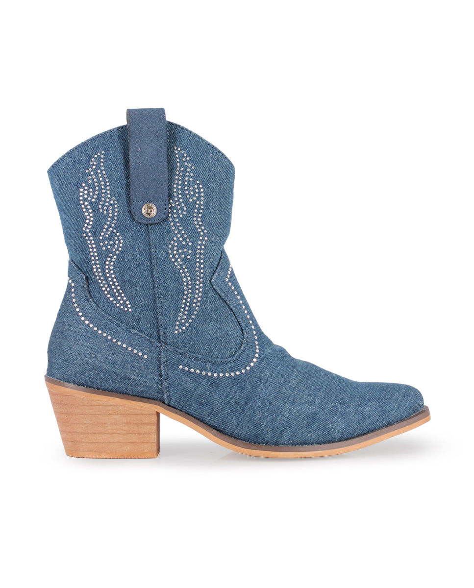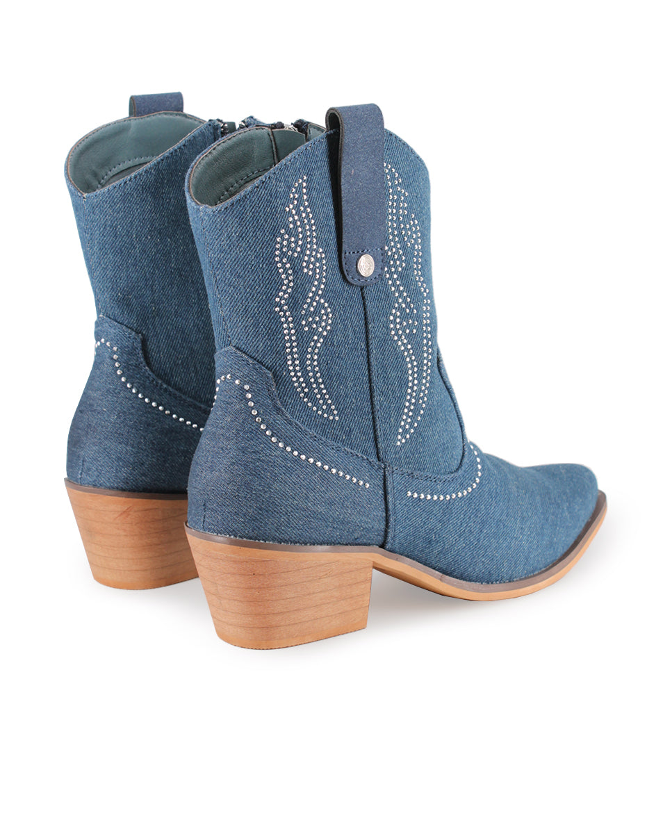 Descubre el encanto del estilo vaquero con los Botines Camperos Vivienne de Blogger Original, perfectos para primavera-verano. Confeccionados en textil azul de denim, añaden un toque fresco y moderno, mientras que la pedrería plateada en la parte superior aporta brillo y sofisticación. El tacón de 4 cm y la caña de 15 cm ofrecen comodidad y altura, mientras que el cierre de cremallera garantiza un ajuste seguro. La punta puntiaguda estiliza la silueta, convirtiéndolos en la opción ideal para destacar con estilo y funcionalidad esta temporada.