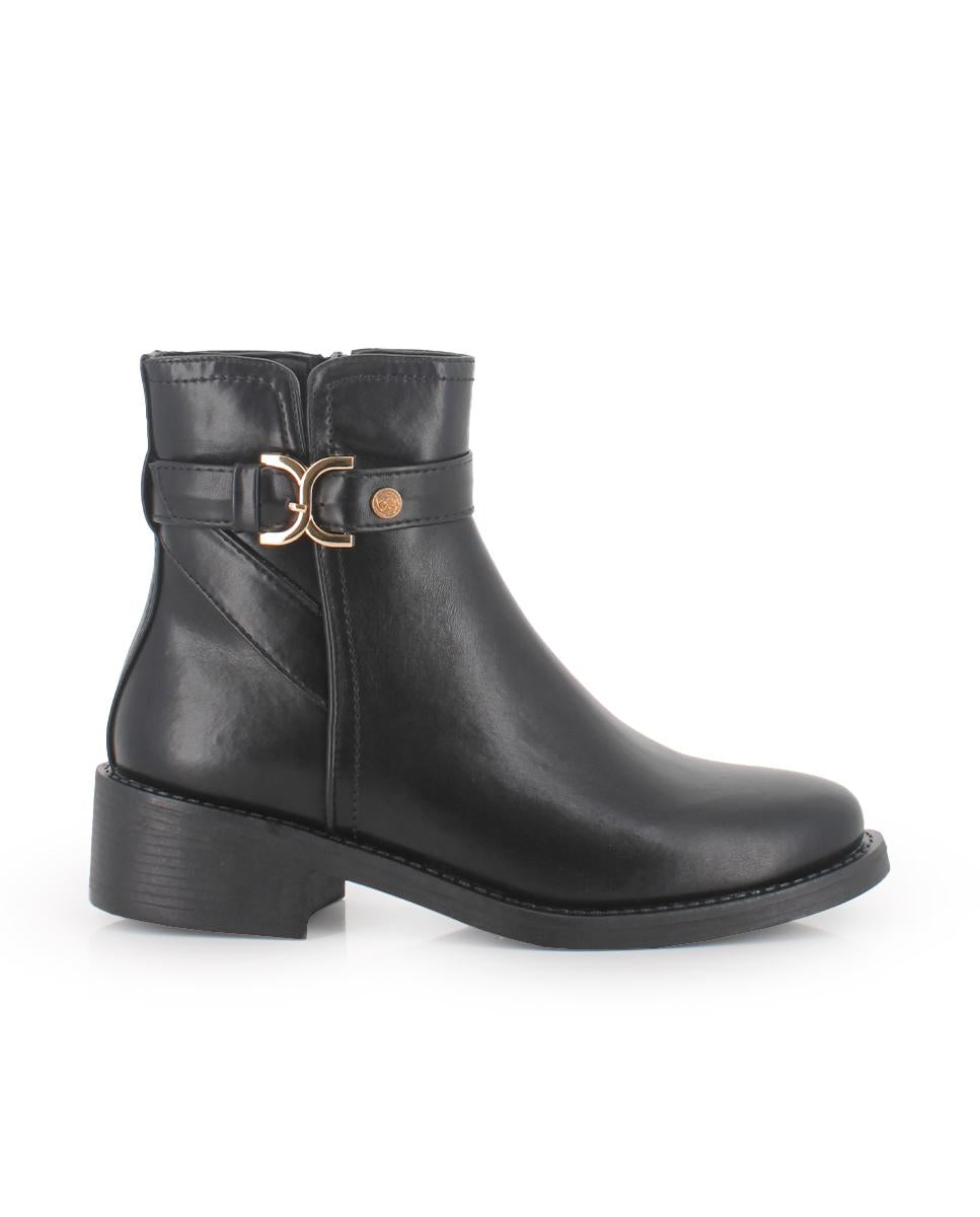 Eleva tu estilo con estos botines Chelsea de Blogger Original. Con caña de 14 cm y piel sintética negra, destacan por sus cintas y herrajes metalizados, además de una abertura superior moderna. El cierre en cremallera garantiza un ajuste perfecto, mientras que el tacón ancho de 4 cm y el forro de paño brindan confort y calidez todo el día.