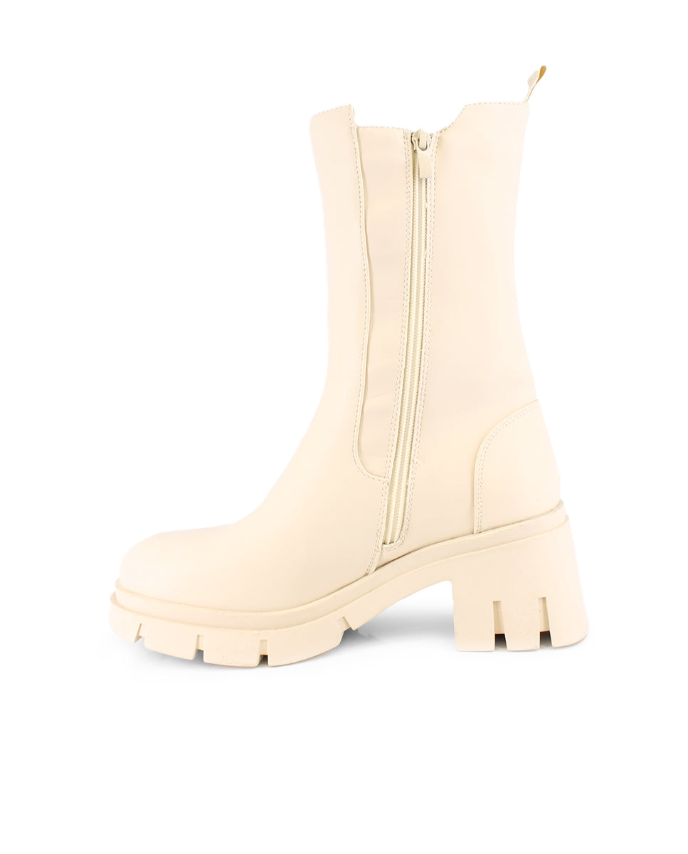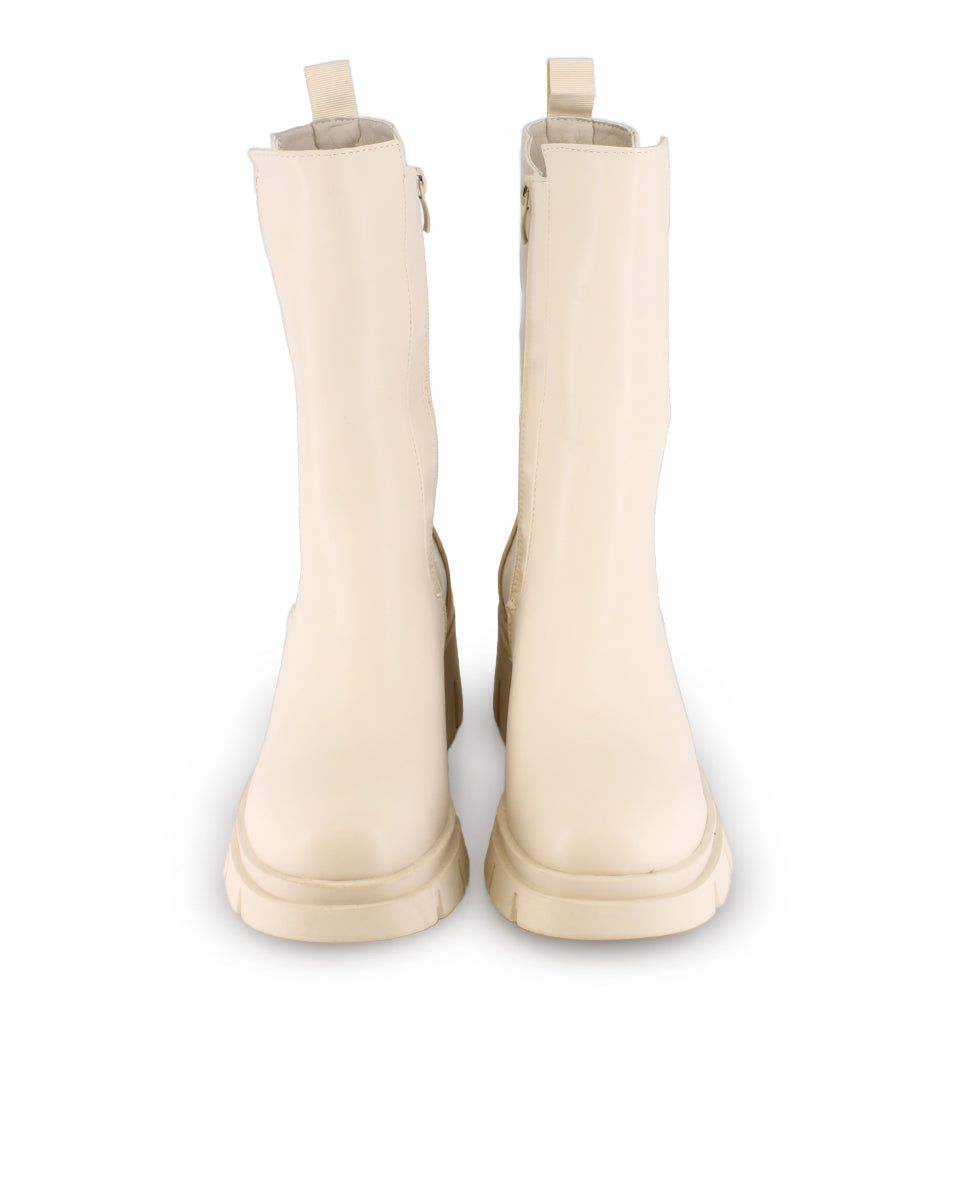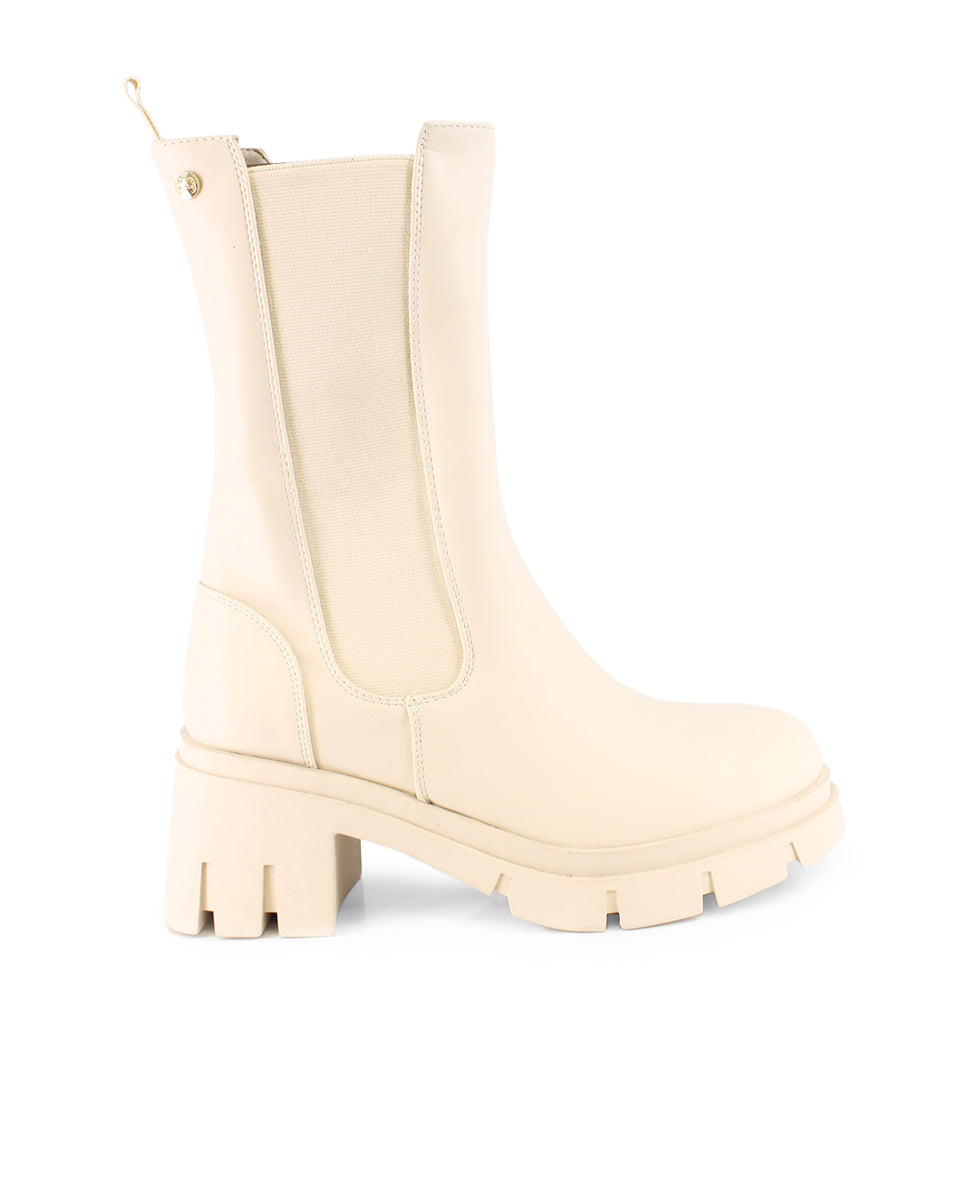 Botines Chelsea en piel sintética color beige, de diseño clásico y elegante. Incorporan plantilla acolchada para mayor confort, suela de goma antideslizante para una pisada segura y tacón ancho de 5 cm que aporta estilo y estabilidad. Sin cordones, su calce es práctico y cómodo, ideal para acompañarte con estilo en tu día a día.