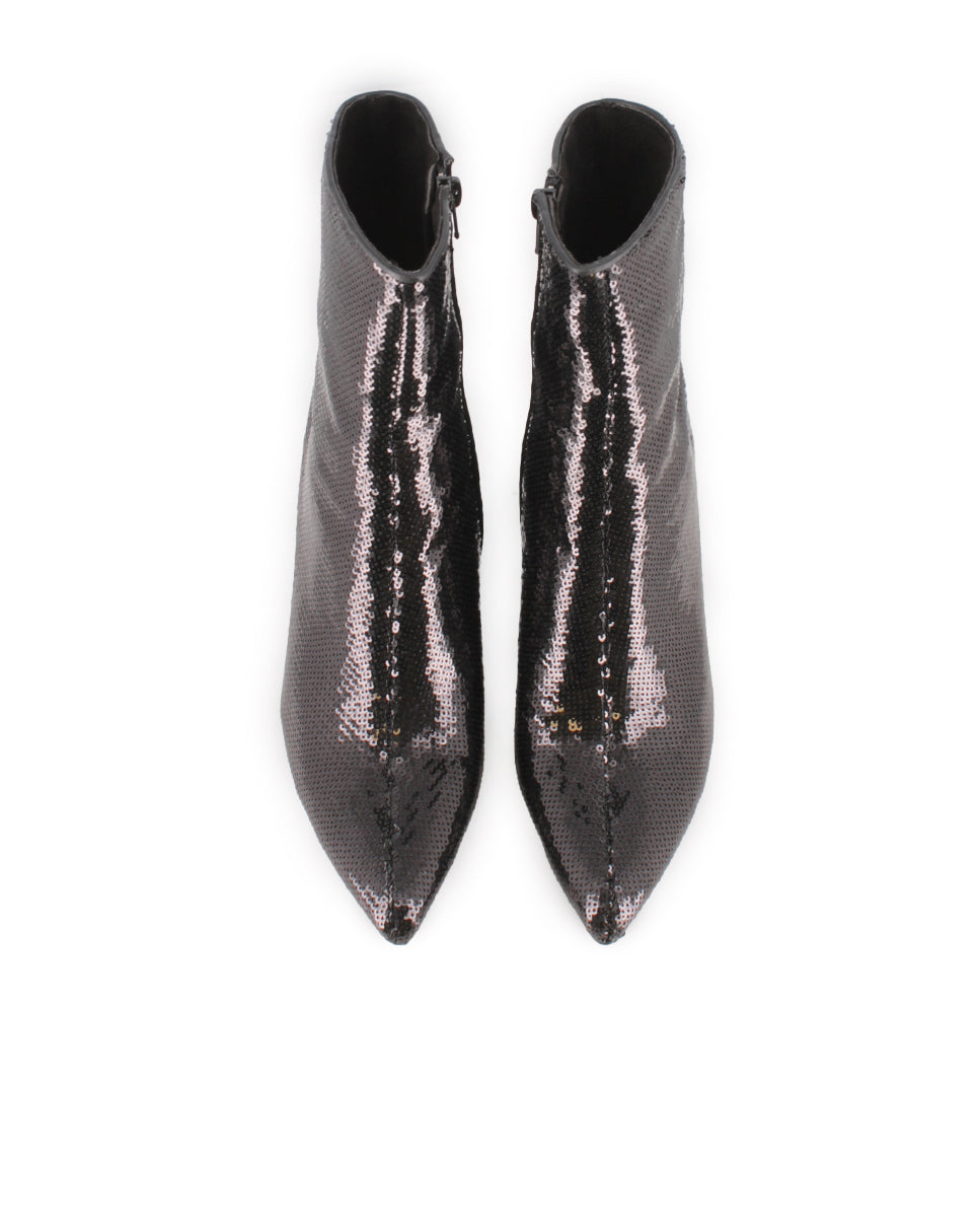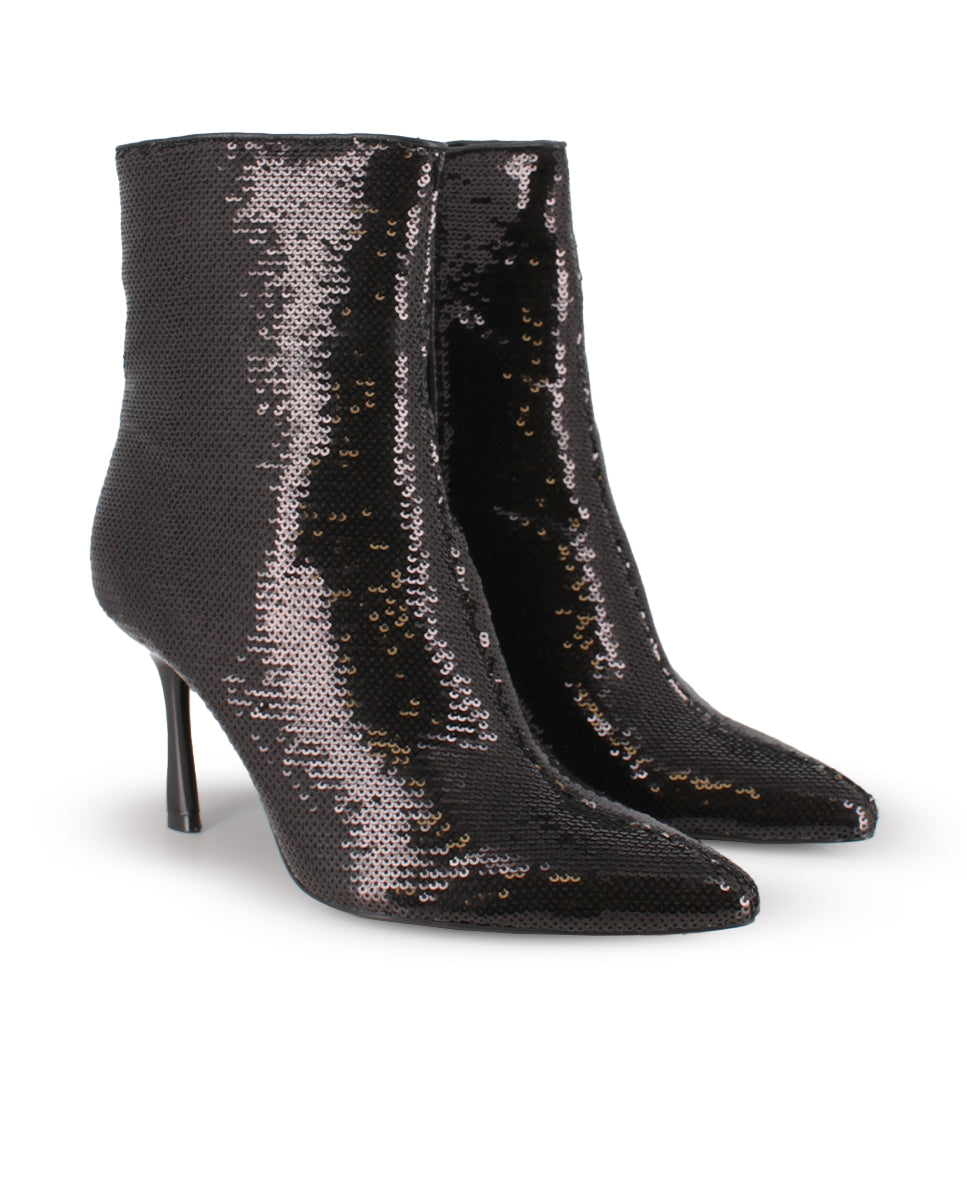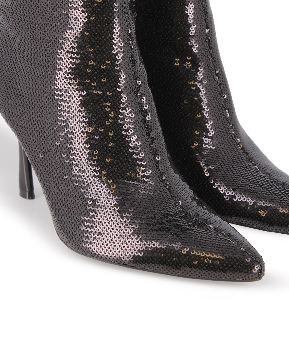 Botines de tacón Blogger Original en material sintético negro, decorados con pedrería brillante para un look deslumbrante. Cuentan con plantilla acolchada, suela de goma antideslizante y cierre de cremallera lateral para mayor comodidad. Su tacón fino de 6 cm y el acabado en punta los convierten en la opción ideal para destacar con estilo y elegancia.