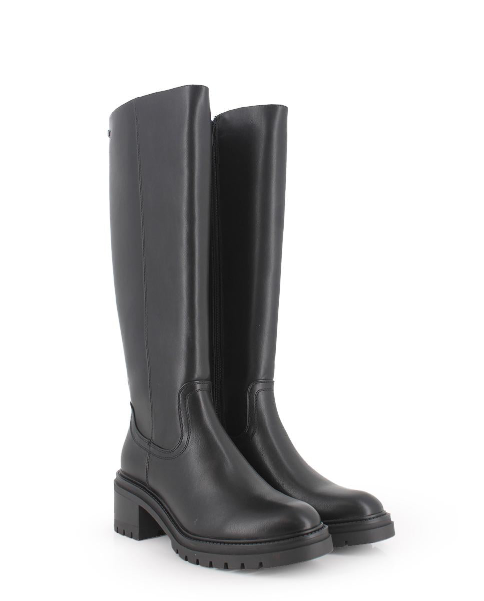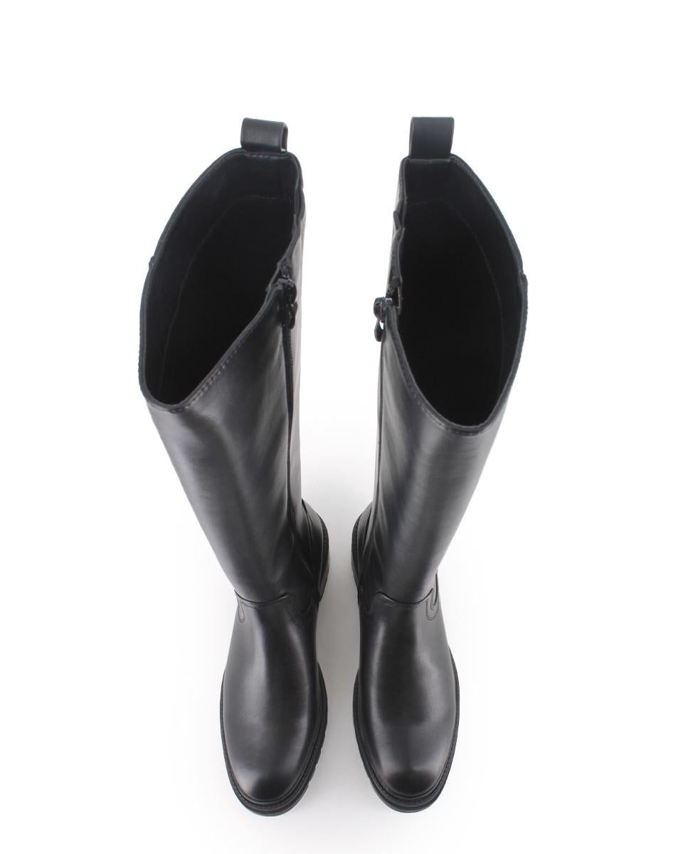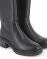 Botas de caña alta de 39 cm firmadas por Blogger Original en piel sintética negra. Con punta redonda y costuras visibles que aportan modernidad, cierre en cremallera para fácil colocación, tacón grueso de 6 cm y plataforma de 2 cm que brindan comodidad y altura. Suela dentada antideslizante e interior acolchado para confort todo el día. Elegancia y funcionalidad en cada paso.