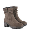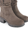 Botines marrones en ante sintético con tacón ancho de 6 cm y caña de 17 cm, combinando estilo y comodidad. Cierre de cremallera lateral para un fácil ajuste. Forro interior textil y plantilla sintética que garantizan confort durante todo el día. Perfectos para mujeres jóvenes que buscan un calzado versátil y moderno para cualquier ocasión.