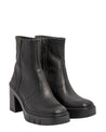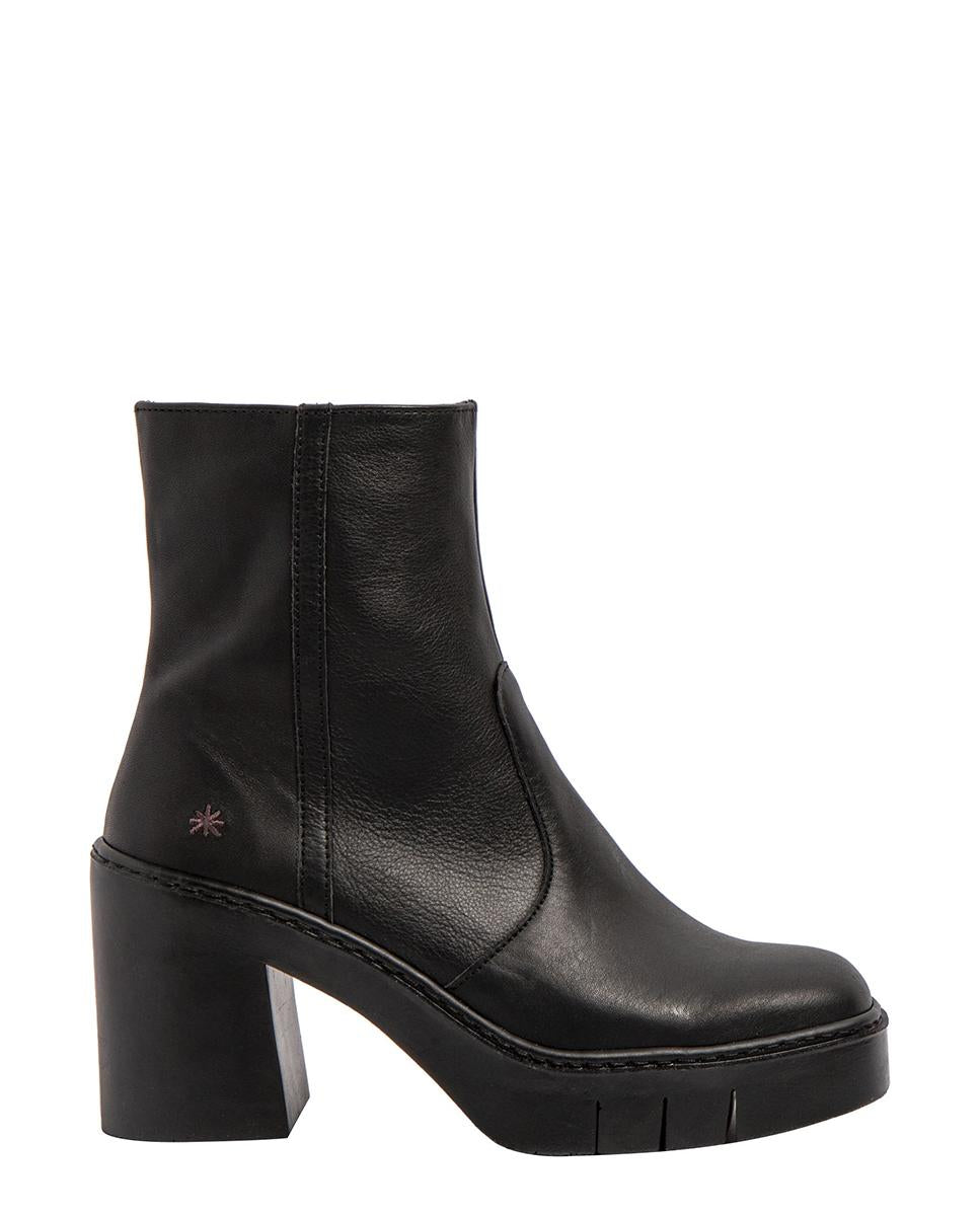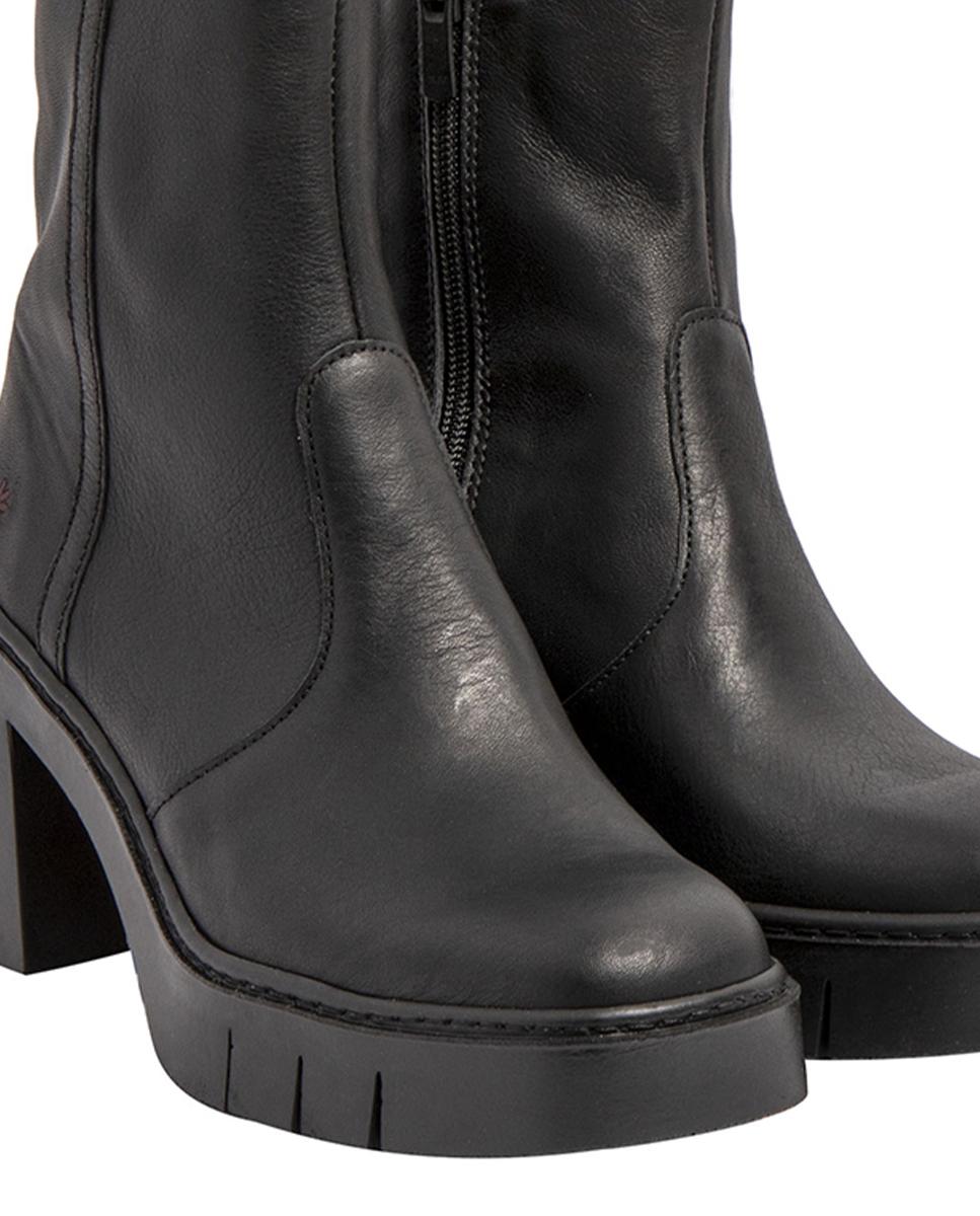 Eleva tu estilo con los botines The Art III en piel negra. Con caña de 12 cm, tacón grueso de 9 cm y plataforma delantera de 2 cm, ofrecen altura y comodidad. Detalles como costuras visibles, punta redonda y cremallera reciclada destacan su diseño. La plantilla extraíble de microfibras garantiza confort diario. Sofisticación con conciencia ecológica.