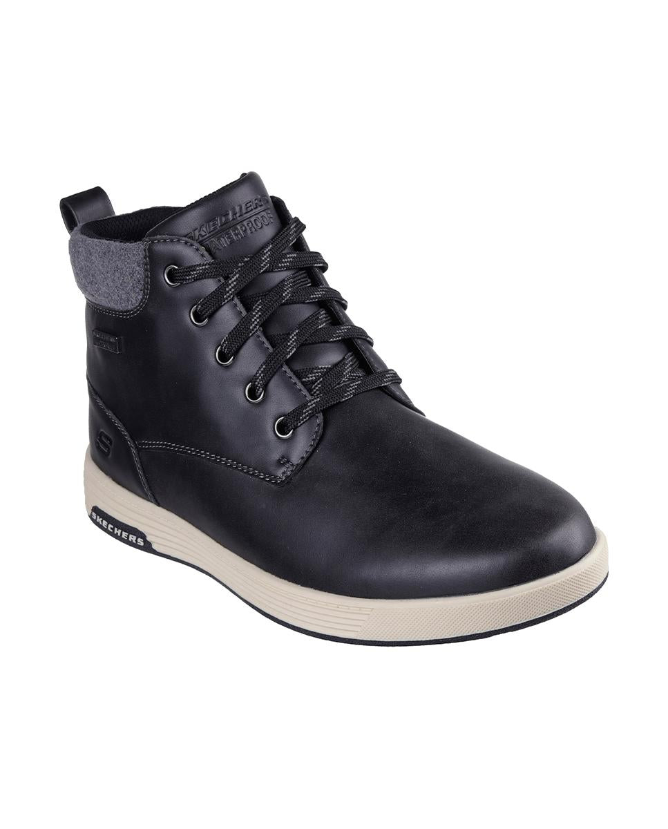 Disfruta de confort y estilo clásico con estos botines casuales de Skechers. Confeccionados en piel sintética color negro, cuentan con tecnología resistente al agua y cierre con cordones. La plantilla Memory Foam con infusión de carbón proporciona amortiguación y frescura durante todo el día. Con 2 cm de altura, son ideales para un look funcional y cómodo en cualquier ocasión.