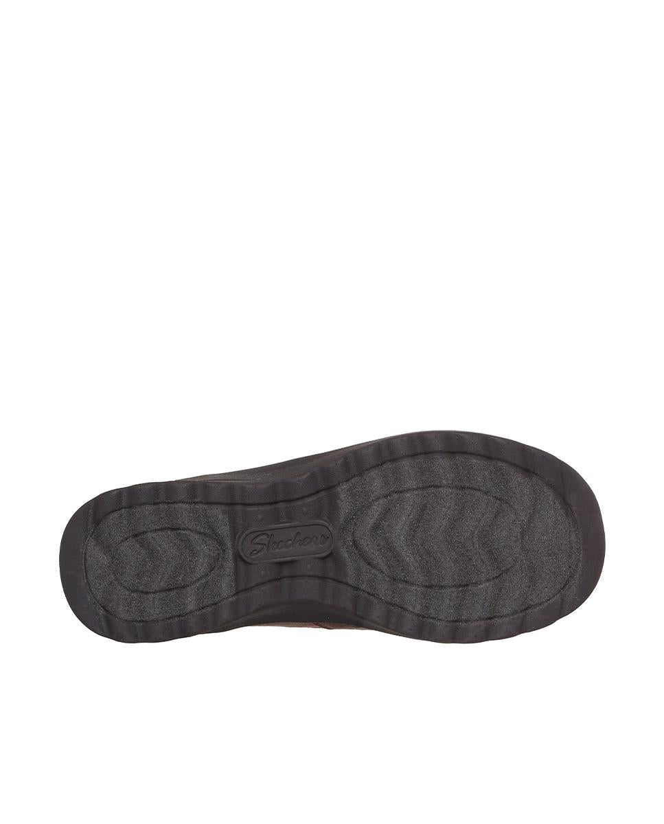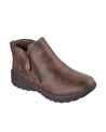Botines planos para mujer de Skechers en material sintético marrón, ideales para el día a día. Con punta redonda y cremallera lateral para un ajuste fácil, ofrecen una altura cómoda de 3 cm. Su plantilla Memory Foam brinda amortiguación en cada paso, mientras la suela de goma con tracción garantiza estabilidad en diferentes superficies. Estilo y confort sin esfuerzo.
