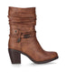 Botines de Chika10 para mujer fabricados en piel sintética color negro. Su diseño destaca por la caña corrugada, una elegante trenza decorativa y tiras en la parte superior. Con punta redonda, cierre con cremallera lateral y un tacón alto y ancho de 7 cm, son ideales para dar un toque distintivo y moderno a tus looks diarios.
