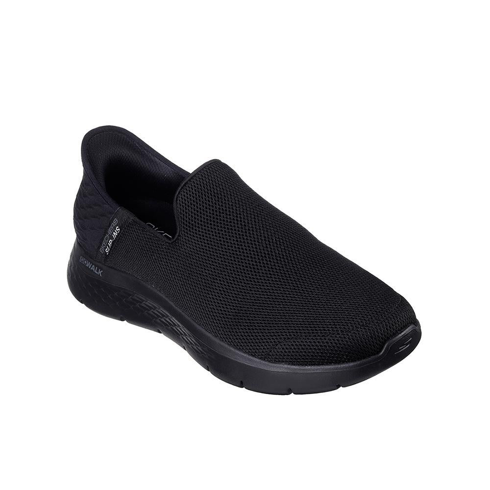 Zapatillas Skechers 216491_BBK parte superior de malla en elegante color negro, con un sutil acabado brillante, añade un toque de sofisticación a tu look. Diseñadas para un ajuste fácil, estas zapatillas cuentan con el exclusivo Heel Pillow, asegurando que tu pie se mantenga cómodamente en su lugar. Disfruta de una sensación de lujo con la plantilla acolchada Skechers Air-Cooled Memory Foam, que ofrece un soporte excepcional y comodidad durante todo el día. Perfectas para actividades de entrenamiento cruzado, la tracción flexible y estabilizada en múltiples superficies, junto con los Flex Pillars, garantizan un rendimiento óptimo.Experimenta una amortiguación ultraligera y reactiva gracias a la tecnología ULTRA GO, que proporciona un paso suave y cómodo. Con una altura de talón de 3 cm y un cierre sin cordones, estas zapatillas combinan estilo y funcionalidad para mantenerte a la moda mientras te mueves con facilidad.