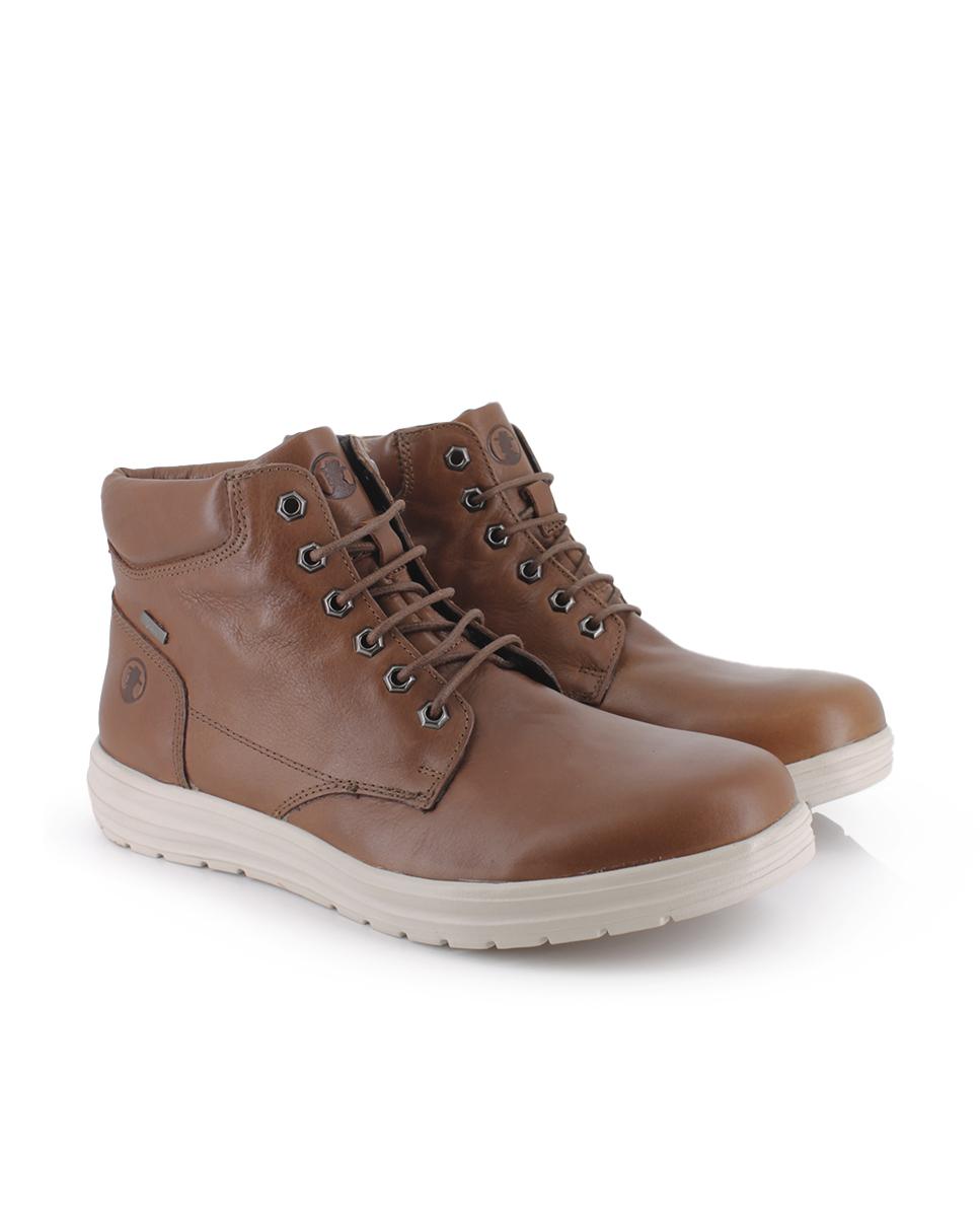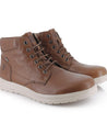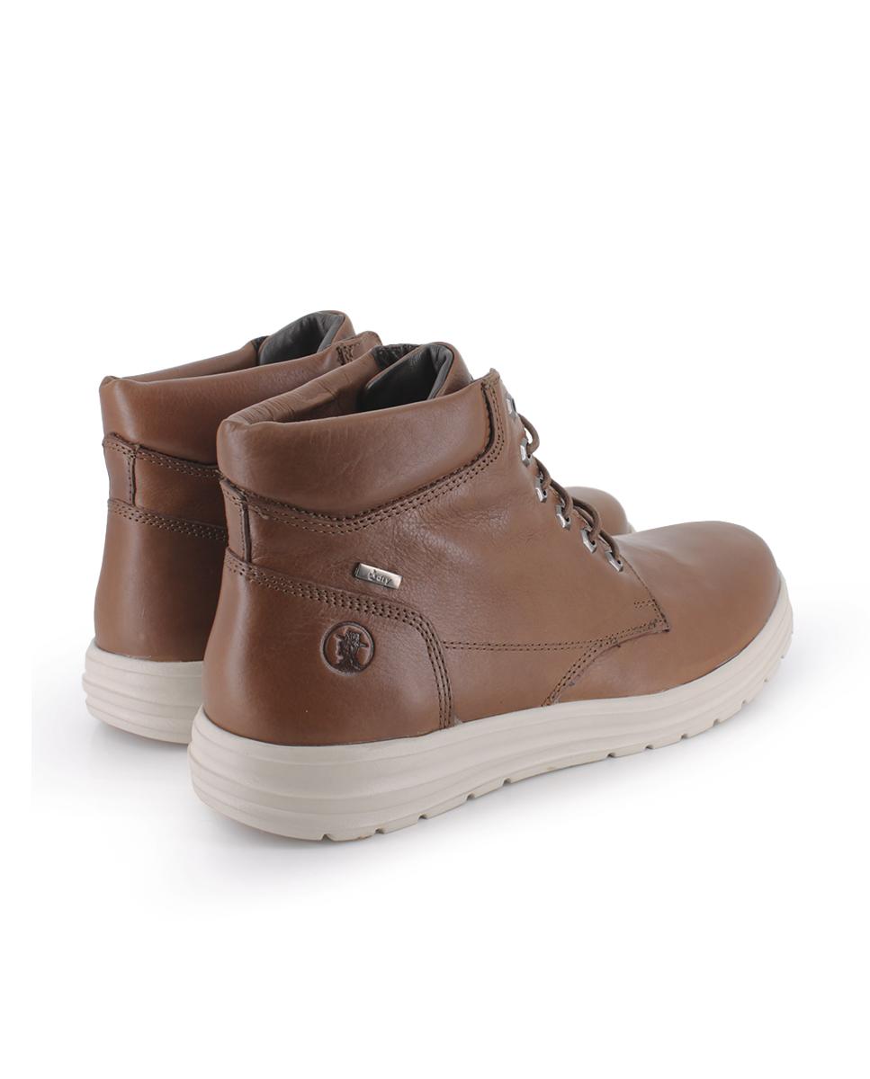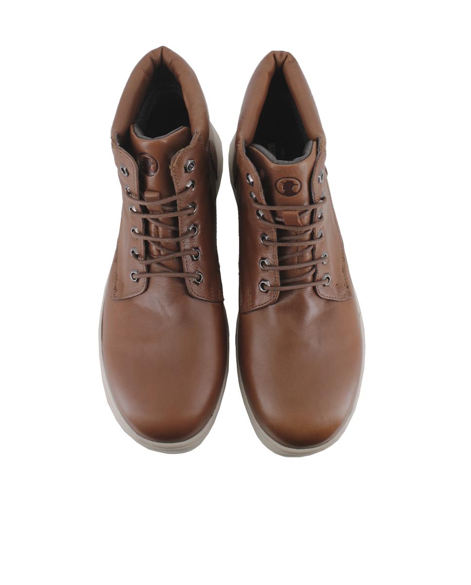 Botines de hombre Coronel Tapiocca en piel color marrón intenso con detalle en la caña en marrón. Cierre de cordones. Forro textil con vista de piel y plantilla textil extraíble termoconformada. Altura de caña de 13 cm y suela plana de 3 cm. Fabricados en España, combinan estilo, comodidad y calidad artesanal.
