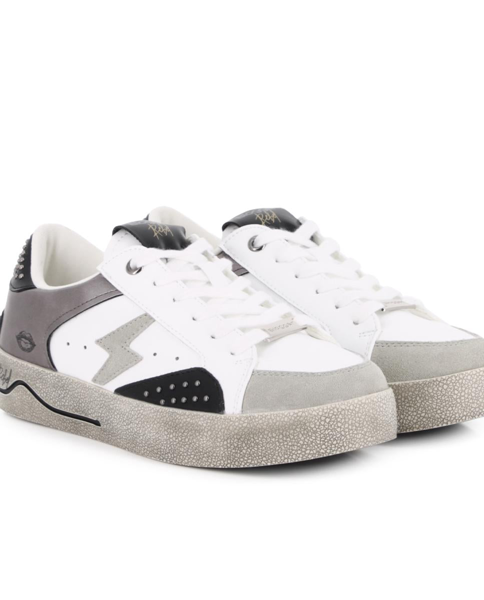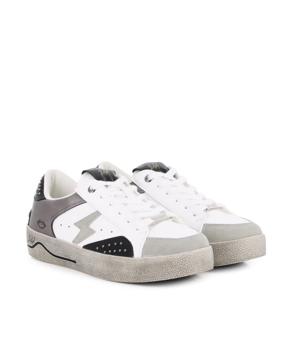 Zapatillas en piel y material sintético en blanco, negro y plata, con detalles de pedrería y texturas variadas que aportan estilo y sofisticación. Plataforma de 3 cm de altura para mayor comodidad y elevación sutil. Forro interior en textil y plantilla acolchada en textil que garantizan suavidad y soporte durante todo el día.