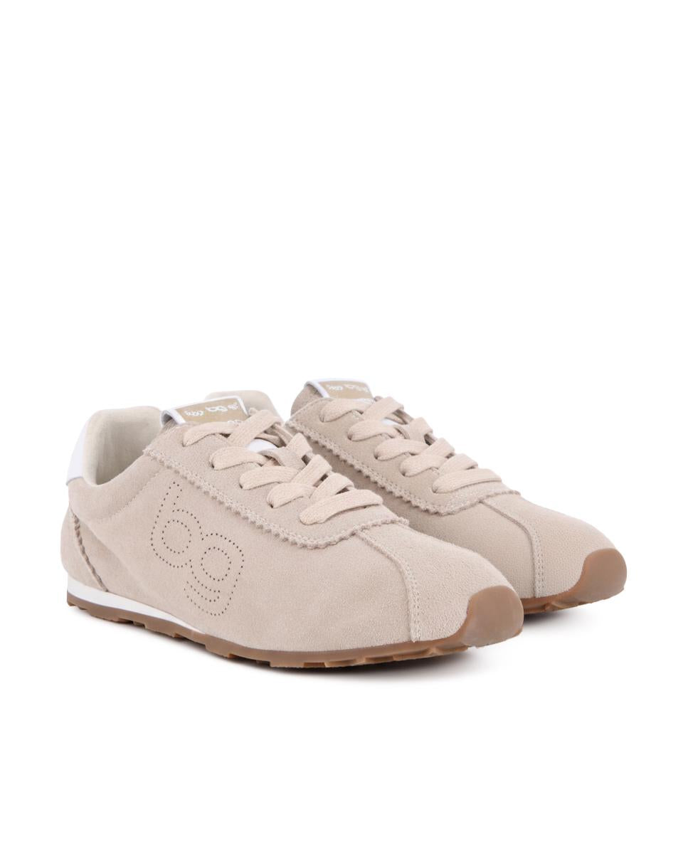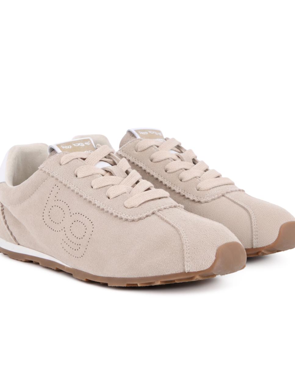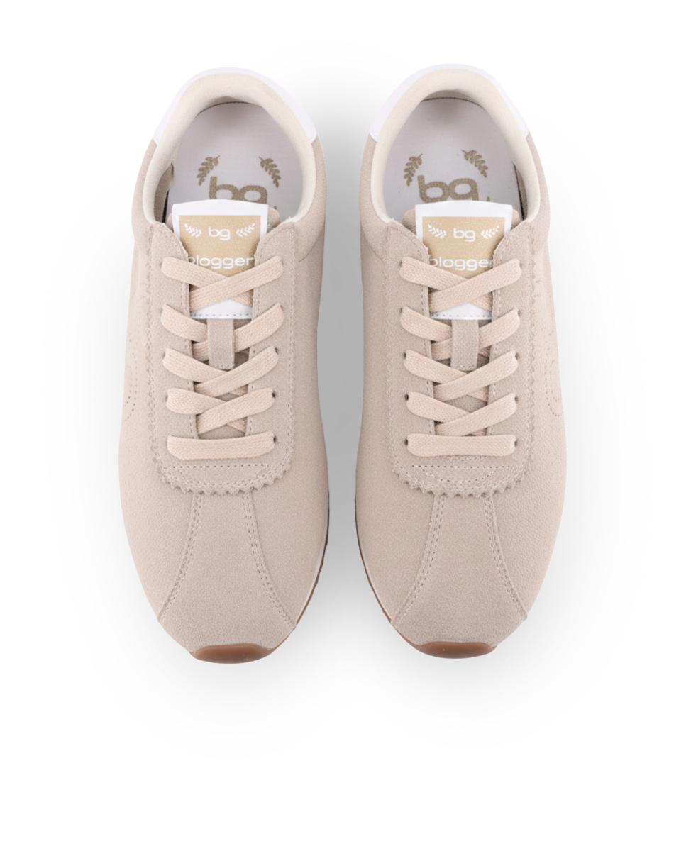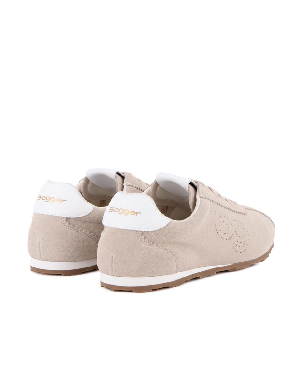 Zapatillas estilo jogger en piel color beige con detalle blanco en la parte trasera, combinando estilo clásico y comodidad diaria. Cuentan con 1 cm de altura, forro interior en piel y plantilla acolchada en textil que ofrece suavidad y soporte en cada paso, ideales para un look casual y versátil.