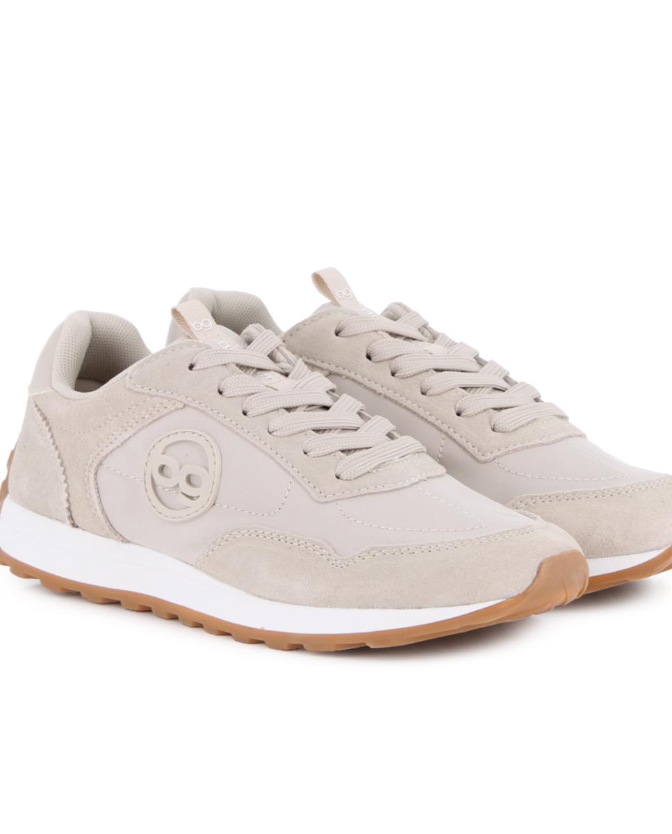 Zapatillas casuales estilo jogger en piel y material sintético color beige. Cuentan con 2 cm de altura, forro interior en textil y plantilla acolchada en textil, ofreciendo comodidad y soporte en cada paso para el uso diario.