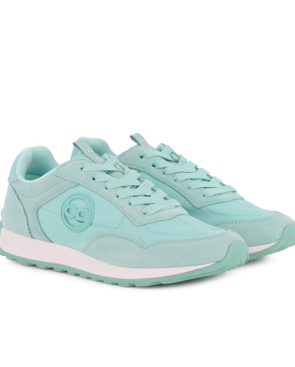 Zapatillas casuales estilo jogger en piel y material sintético color verde. Cuentan con 2 cm de altura, forro interior en textil y plantilla acolchada en textil, ofreciendo comodidad y soporte en cada paso para el uso diario.