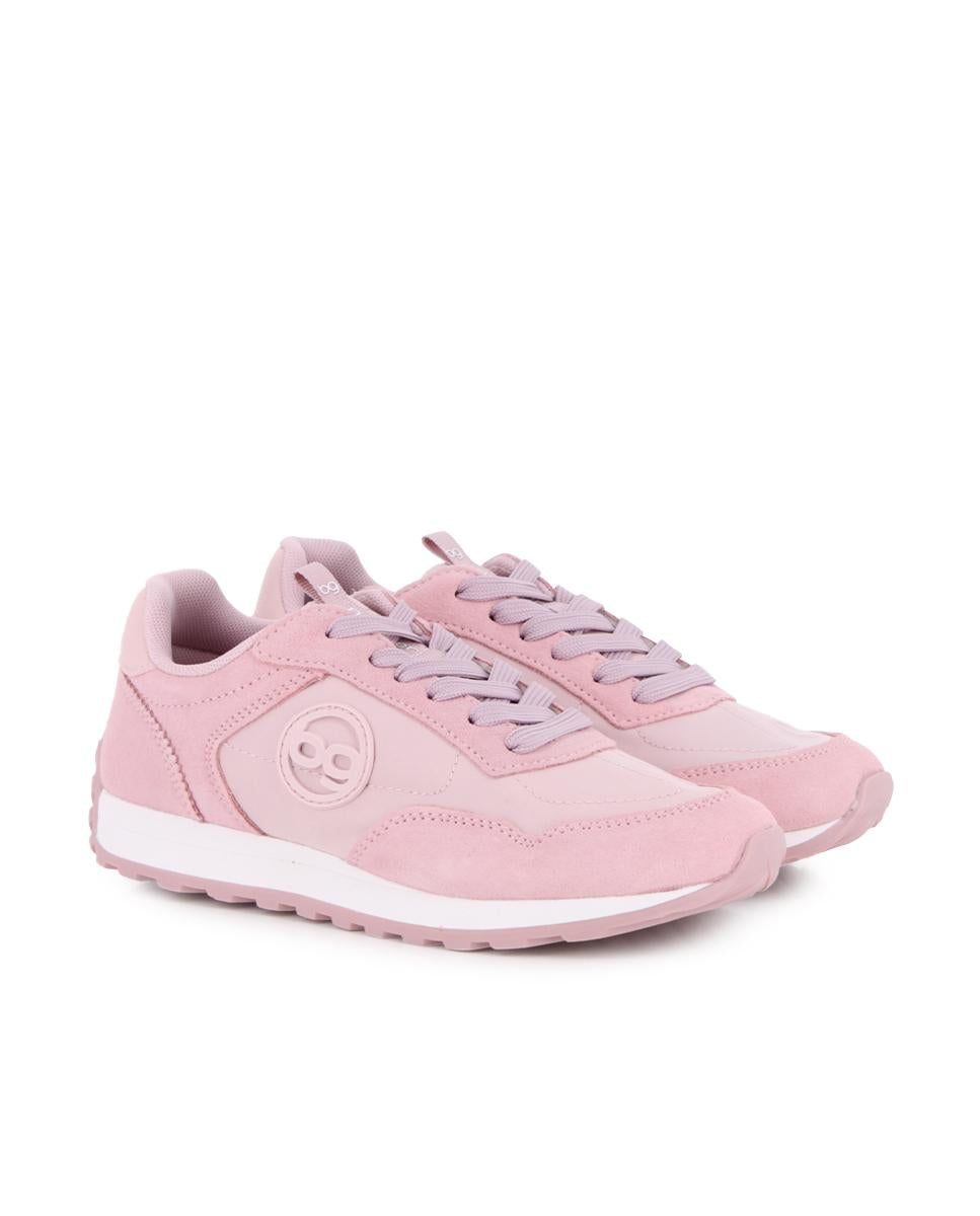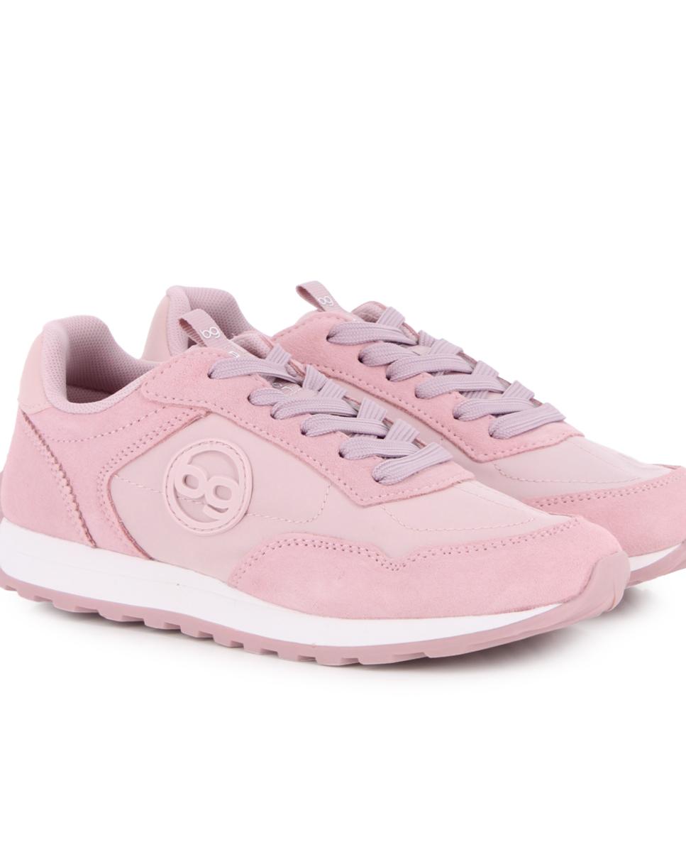 Zapatillas casuales estilo jogger en piel y material sintético color rosa. Cuentan con 2 cm de altura, forro interior en textil y plantilla acolchada en textil, ofreciendo comodidad y soporte en cada paso para el uso diario.