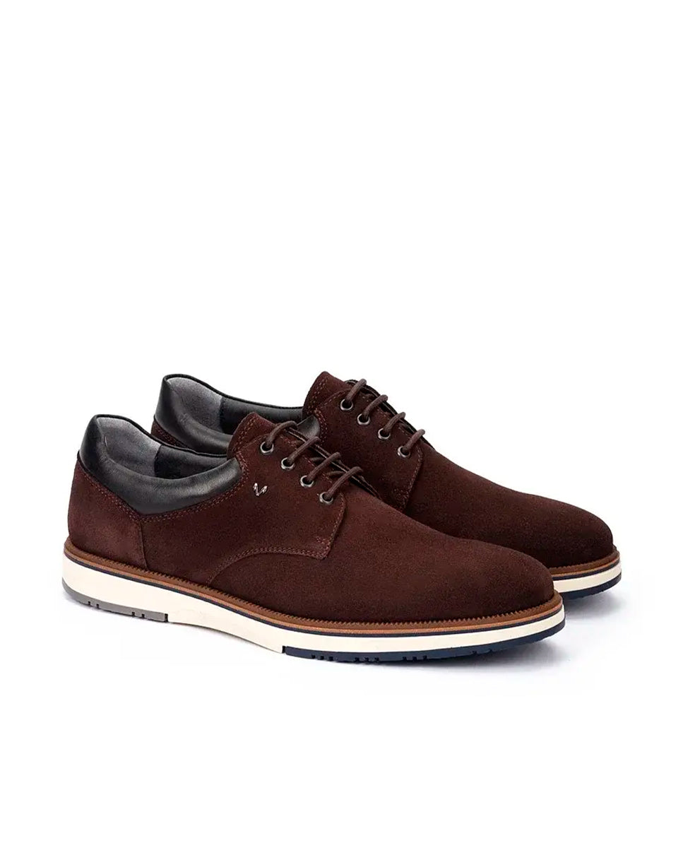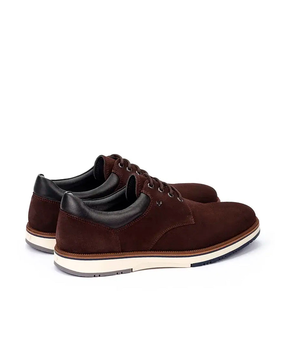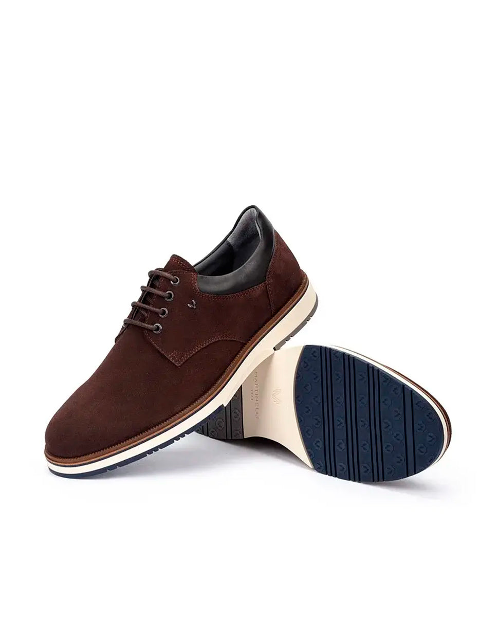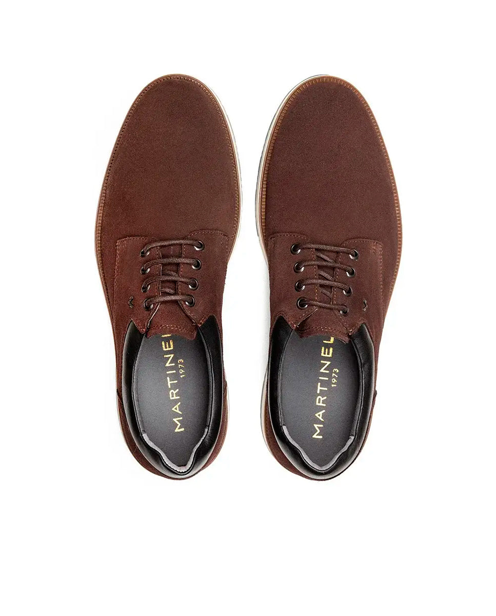 Zapatos para hombre de Martinelli con diseño Oxford, perfectos para un look casual con un toque elegante. Están hechos en serraje marrón y cuentan con una suela de goma de 2 cm que garantiza comodidad y agarre. Incluyen un detalle marrón en la entresuela que aporta contraste y una plantilla acolchada para mayor confort.