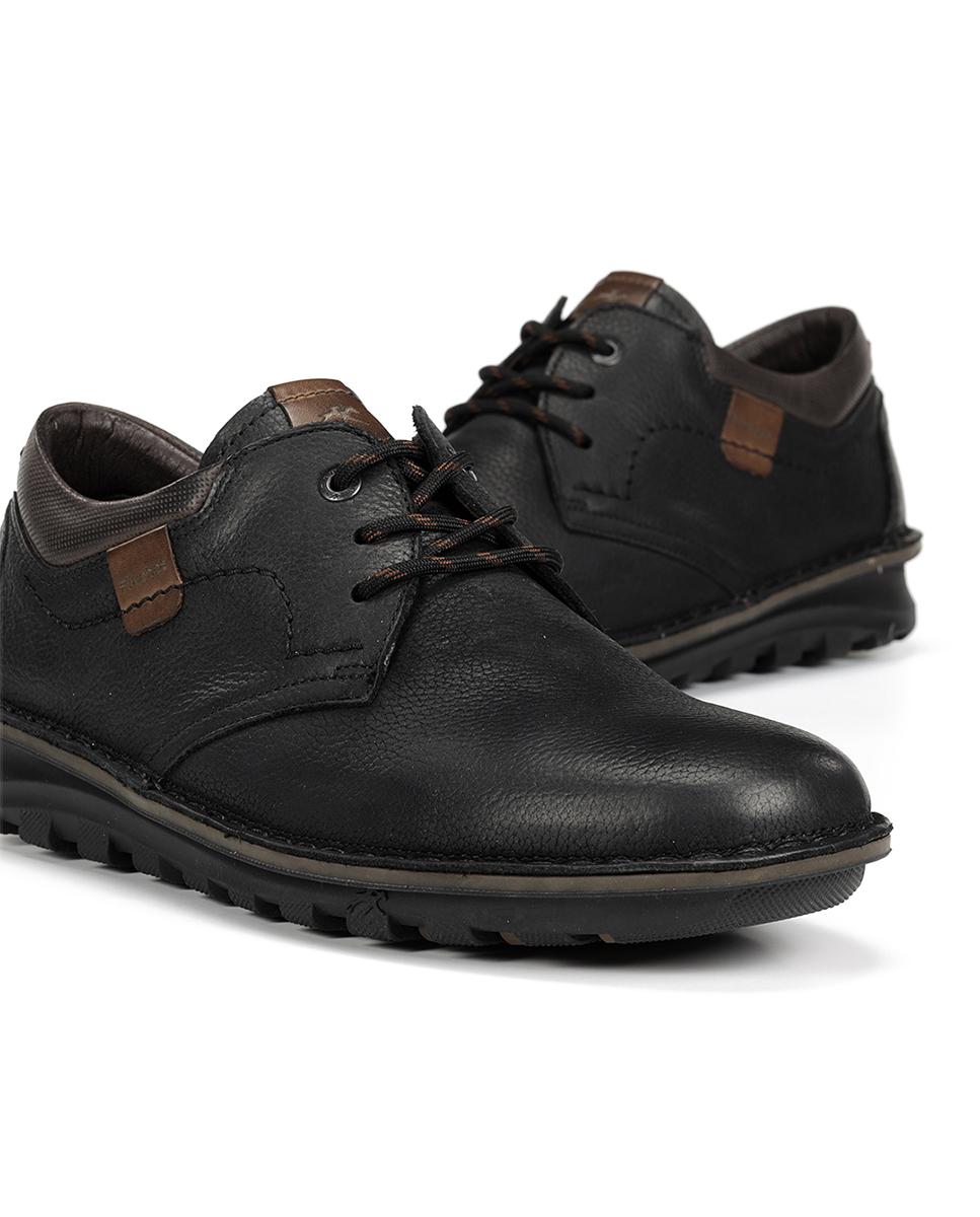 Zapatos casuales estilo oxford para hombre de Fluchos en piel color negro, perfectos para looks casuales con un toque formal. Con cierre de cordones y puntera clásica, destacan por su diseño elegante y funcional. La suela de goma de 3?cm ofrece amortiguación y agarre. Fabricados siguiendo la arquitectura del pie, se adaptan al 100?% para una comodidad total.