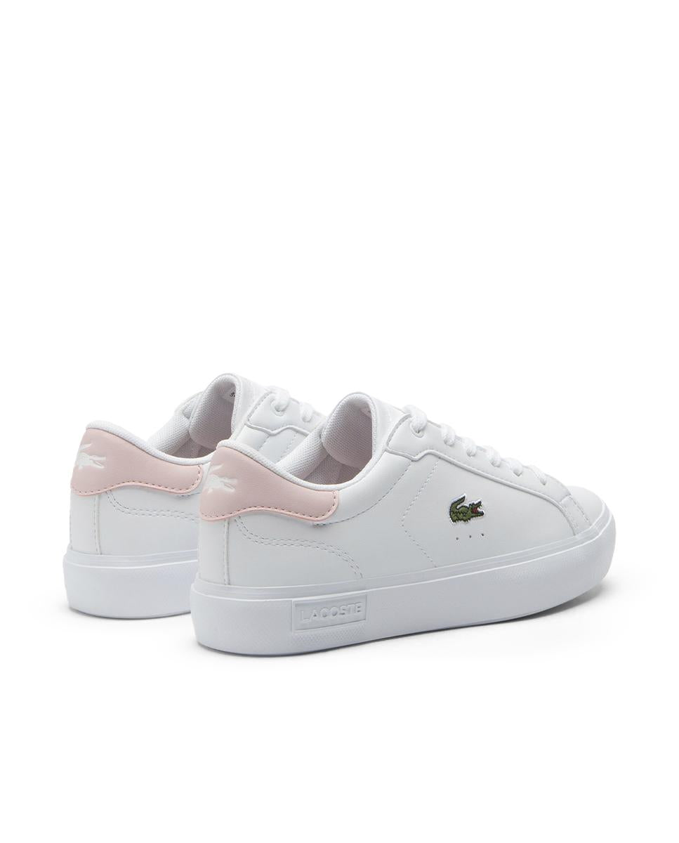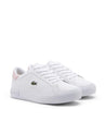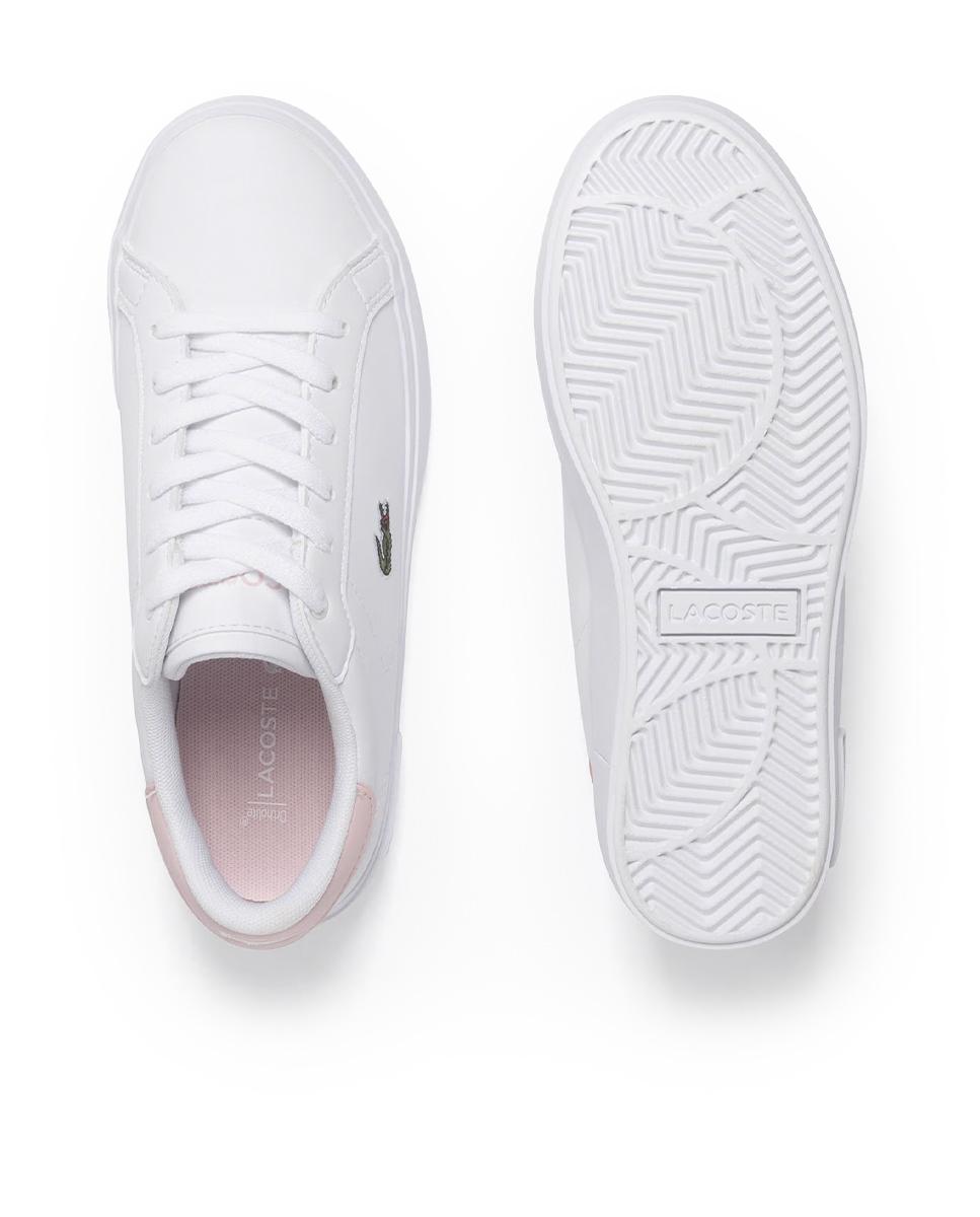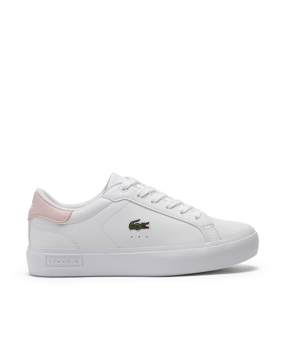 Zapatillas casuales de Lacoste para mujer con diseño minimalista y atemporal. Confeccionadas en piel sintética blanca, incorporan un detalle en rosa pastel en el talón. Perforaciones laterales para mayor transpirabilidad, cocodrilo bordado en el lateral y forro textil. Plantilla de espuma para una amortiguación óptima y suela de caucho para mayor durabilidad. Ideales para el uso diario.