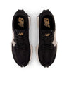 Estas zapatillas para mujer de New Balance reinterpretan el estilo retro de los años 70 con un diseño moderno en blanco y negro y estampado atrevido. Confeccionadas en ante y malla, destacan por su colmillo exagerado y texturas contrastantes. La entresuela curvada aporta comodidad, y la suela de caucho dentada garantiza tracción. Cierre con cordones para un ajuste perfecto.