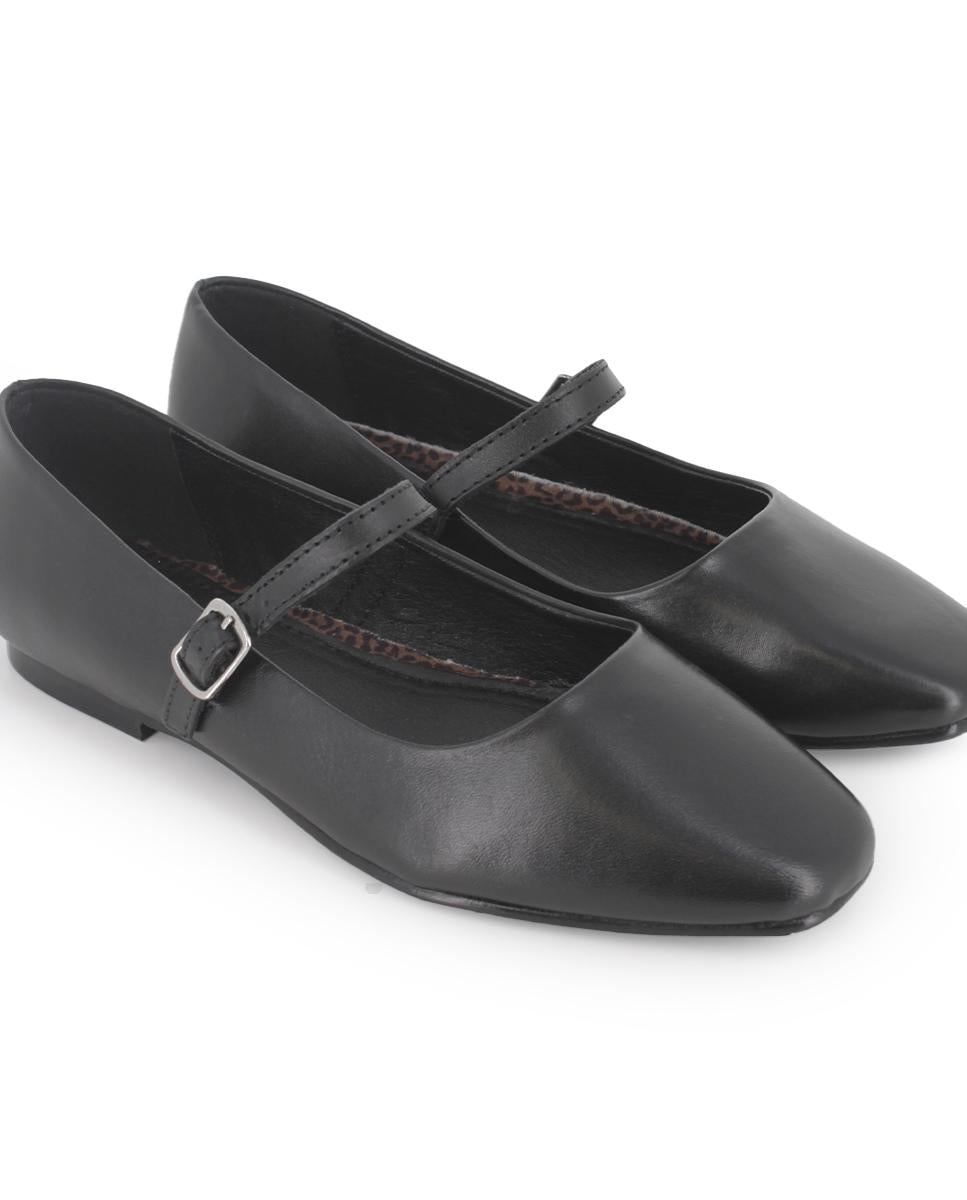 Bailarinas estilo manoletinas en piel color negro, con un diseño clásico y sofisticado. Cuentan con piso plano de 1 cm para máxima comodidad. La tira en el empeine mide 15 cm y tiene cierre de hebilla para un ajuste seguro. Forro interior y plantilla en piel, que aportan suavidad y transpirabilidad al calzado.