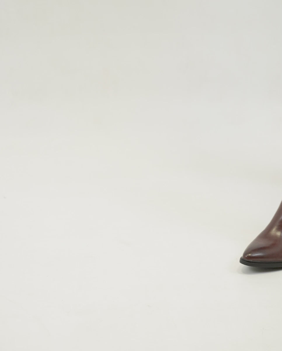Botas burdeos en piel sintética con punta elegante, tira con hebilla lateral y detalle metálico trasero. Tacón ancho de 6 cm que combina estilo y comodidad. Caña alta de 37 cm con cierre de cremallera lateral para un ajuste perfecto. Forro interior textil y plantilla sintética que garantizan confort. Ideal para mujeres jóvenes con estilo moderno y urbano.