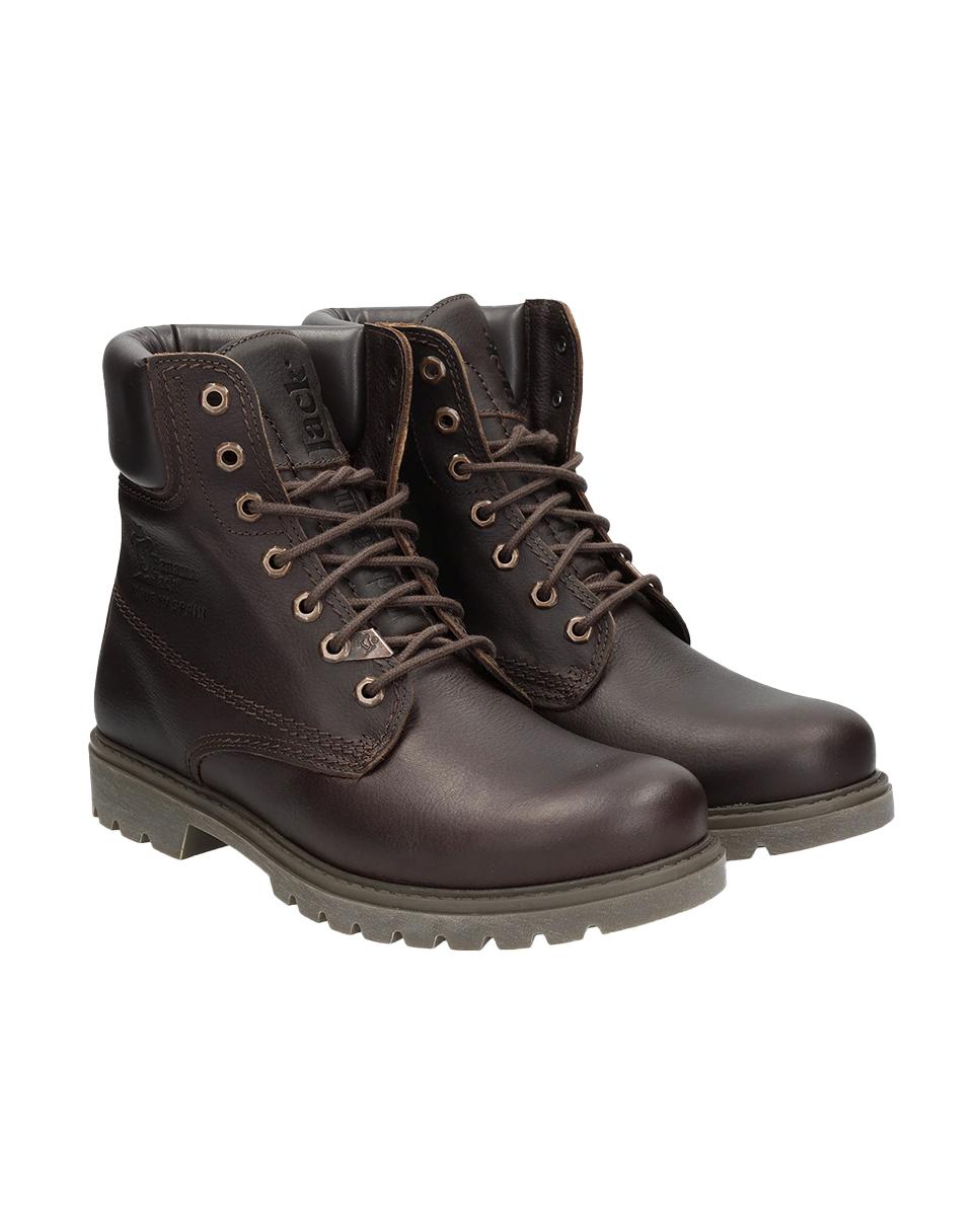 Botines para hombre de Panama Jack fabricados en piel marrón resistente al agua, ideales para cualquier clima. Cuentan con cierre de cordones, forro interior de piel y plantilla anatómica extraíble para mayor confort. Suela de caucho natural, flexible y duradera. Caña de 16 cm y tacón de 4,5 cm. Un modelo robusto y 100?% hecho en España.