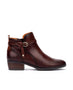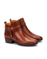 Botines de tacón para mujer en piel tono de marrón, con un diseño clásico de punta redonda. Destacan por la tira con hebilla metálica que bordea la parte superior, aportando un toque elegante. Cuentan con tacón ancho de 4 cm que ofrece estabilidad y confort, y plantilla extraíble con tecnología Memory Foam para una pisada más cómoda.