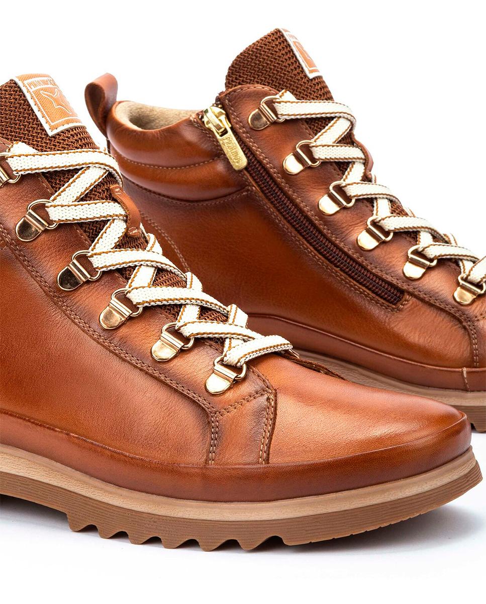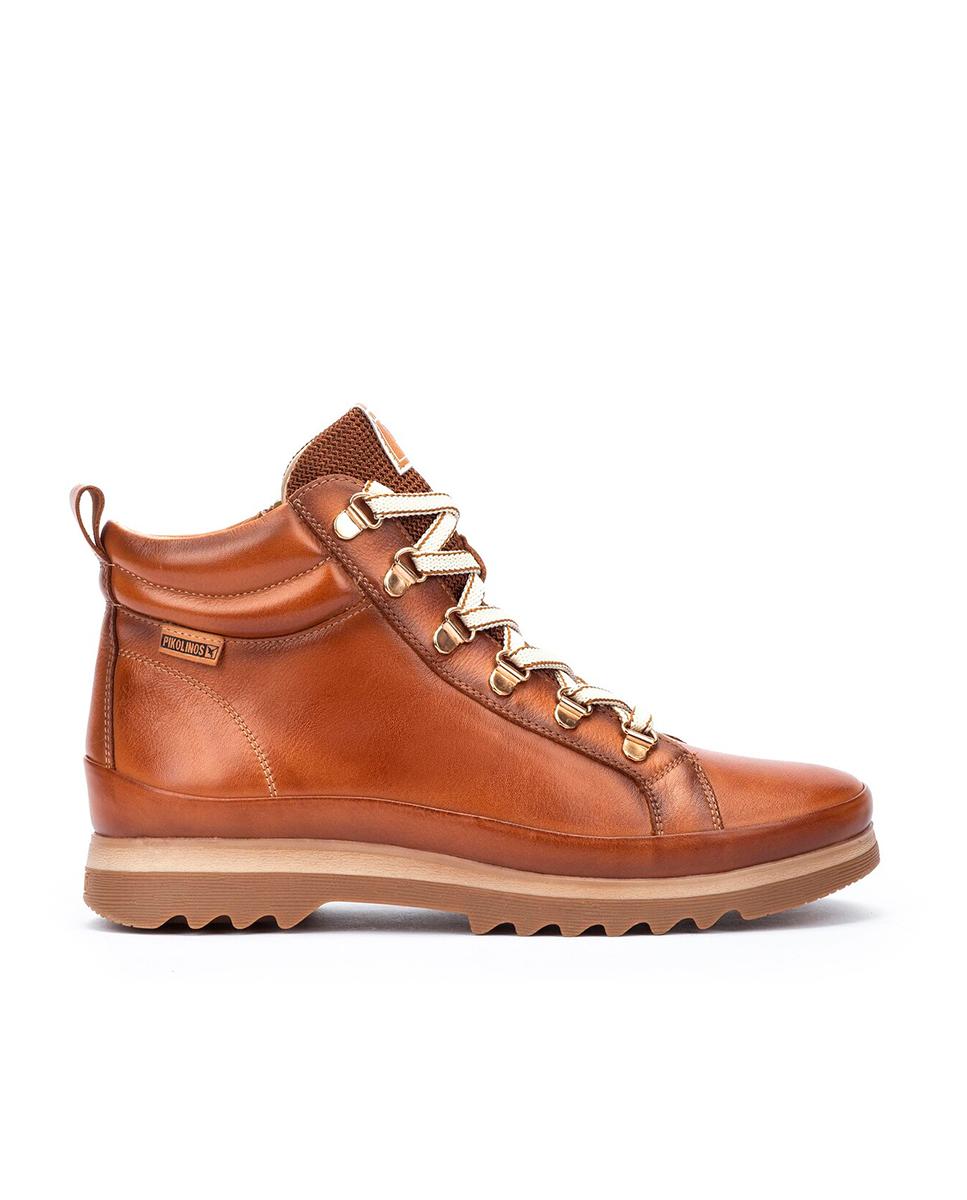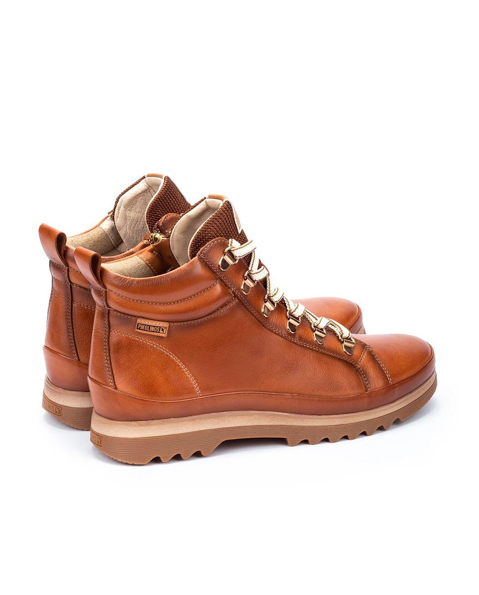 Botines Pikolinos para mujer en piel color brandy, ideales para combinar estilo y comodidad. Su forro textil y plantilla acolchada de memory foam ofrecen una pisada suave durante todo el día. Con cierre de cordones y cremallera lateral, garantizan un ajuste práctico y seguro. Perfectos para cualquier ocasión gracias a su diseño moderno y versátil.