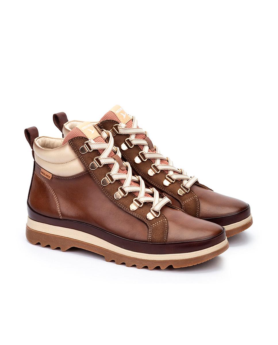 A veces, la sencillez es sinónimo de estilo. Estos botines deportivos para mujer de Pikolinos destacan por su piel marrón de acabado cuidado y su diseño funcional. La suela track tipo trekking aporta carácter y personalidad, mientras que el forro interior de pelo natural garantiza calidez en días fríos. Cierre con cordones y cremallera y una cómoda altura de 3 cm.