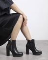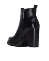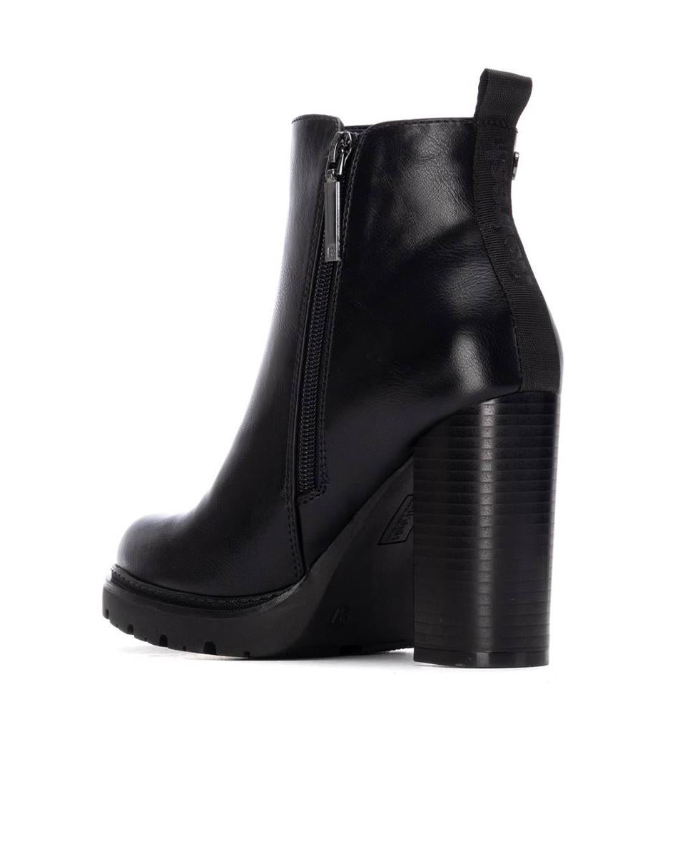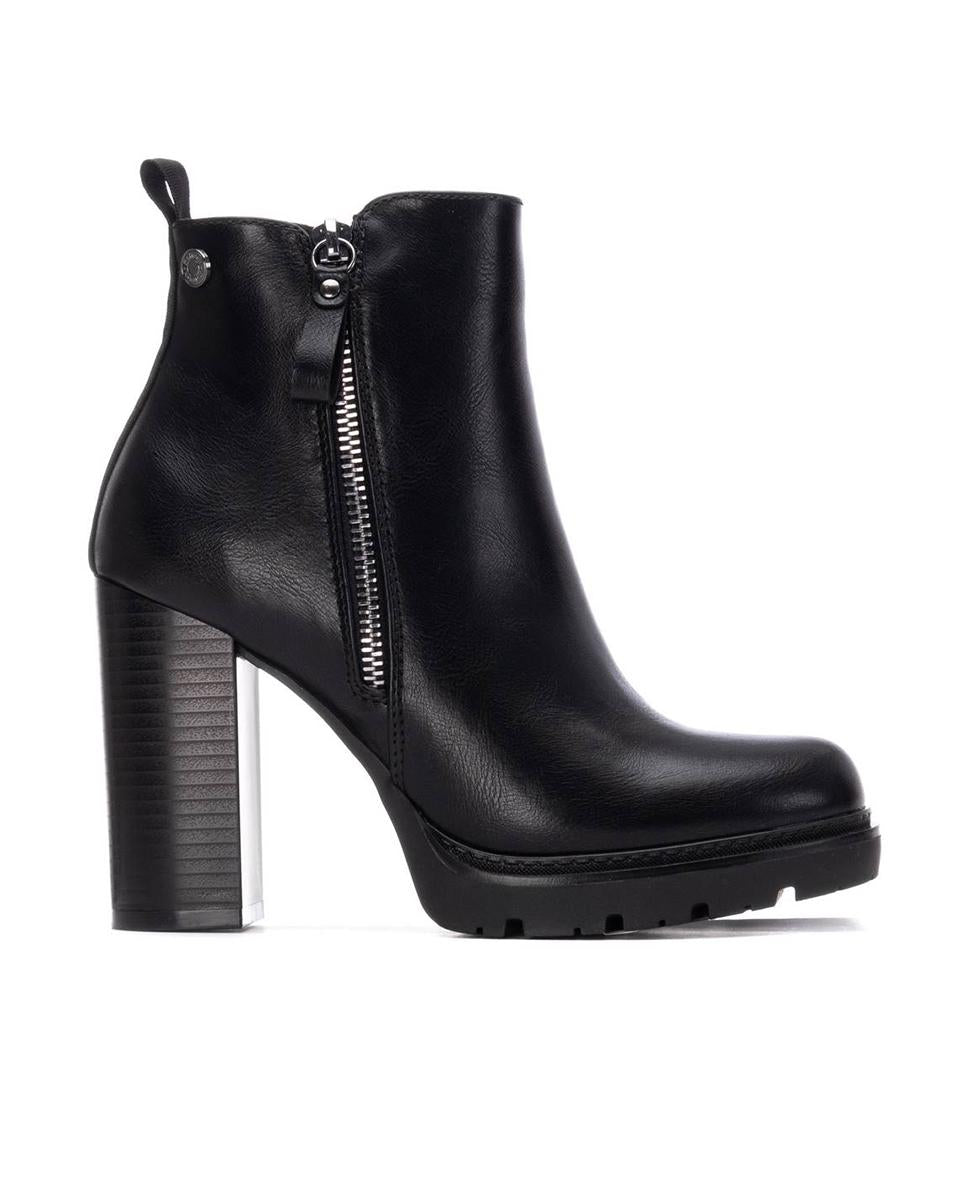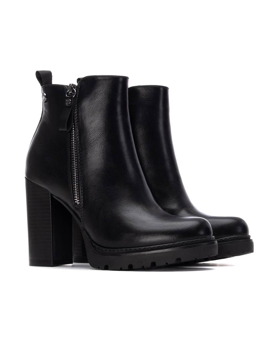 Botines de tacón para mujer de la marca Refresh en piel sintética negra, con cierre de cremallera interior y cremallera decorativa externa. Tacón ancho de 10 cm con plataforma antideslizante, que combina estilo y seguridad. Básico versátil para el invierno y perfecto para cualquier look. Modelo certificado 100% vegano por la Organización Mundial de los Derechos de los Animales.
