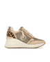 Luce un estilo único con esta zapatilla con cuña de mujer de Carmela, fabricada en piel de alta calidad con detalles en malla en color bronce. Su diseño combina cremallera lateral y cordones ajustables para mayor comodidad. El detalle trasero con estampado de leopardo aporta un toque atrevido. Con plantilla extraíble, suela antideslizante y 6 cm de altura, es ideal para un look urbano elegante.