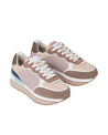 Zapatillas casuales para mujer con combinación de tejidos y un atractivo contraste de colores. Incorporan detalles en ante y sintético, además de acabados acolchados y metalizados en los laterales. Su entresuela bicolor de plataforma en goma EVA y la suela exterior de caucho aportan comodidad y tracción. Con cierre de cordones y estabilizador con logo en relieve.