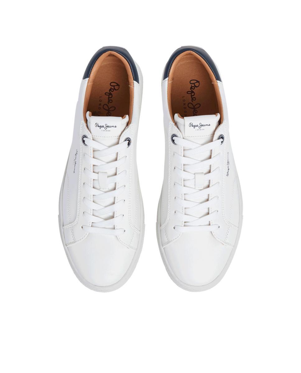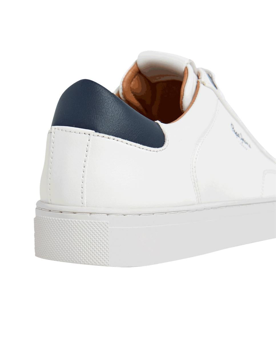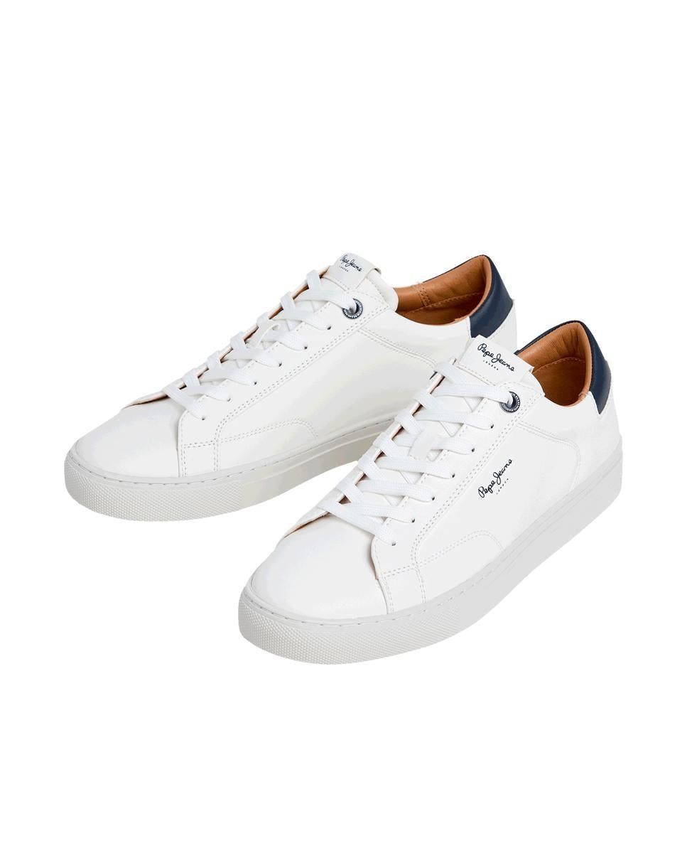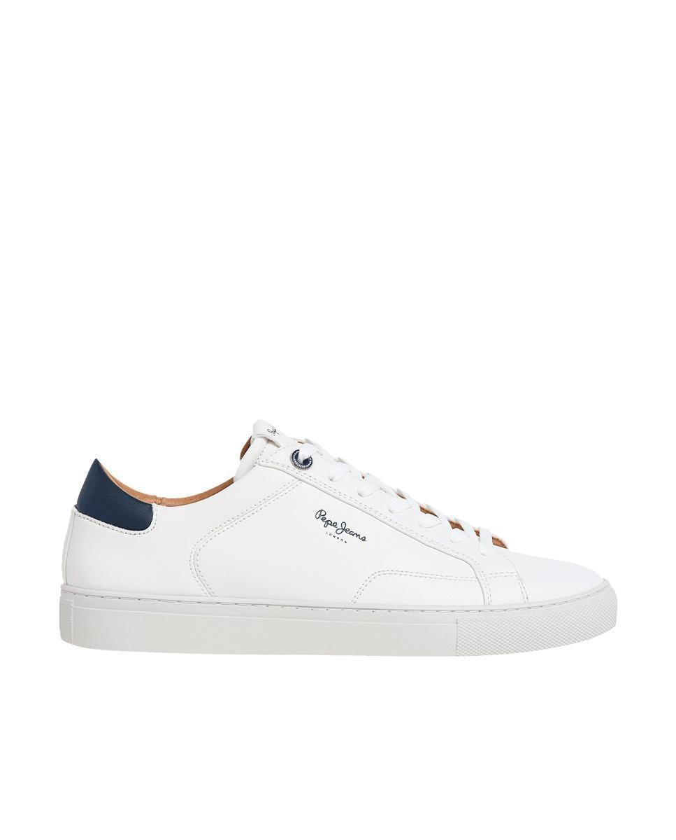 Estas zapatillas clásicas de Pepe Jeans para hombre combinan un diseño de punta redonda con piel en color blanco y un elegante detalle azul marino en la parte trasera. Incorporan cierre de cordones y costuras visibles para un estilo atemporal. La plantilla acolchada ofrece comodidad en cada paso, mientras que la suela de goma de 2 cm de altura asegura tracción y resistencia, ideales para el uso diario.
