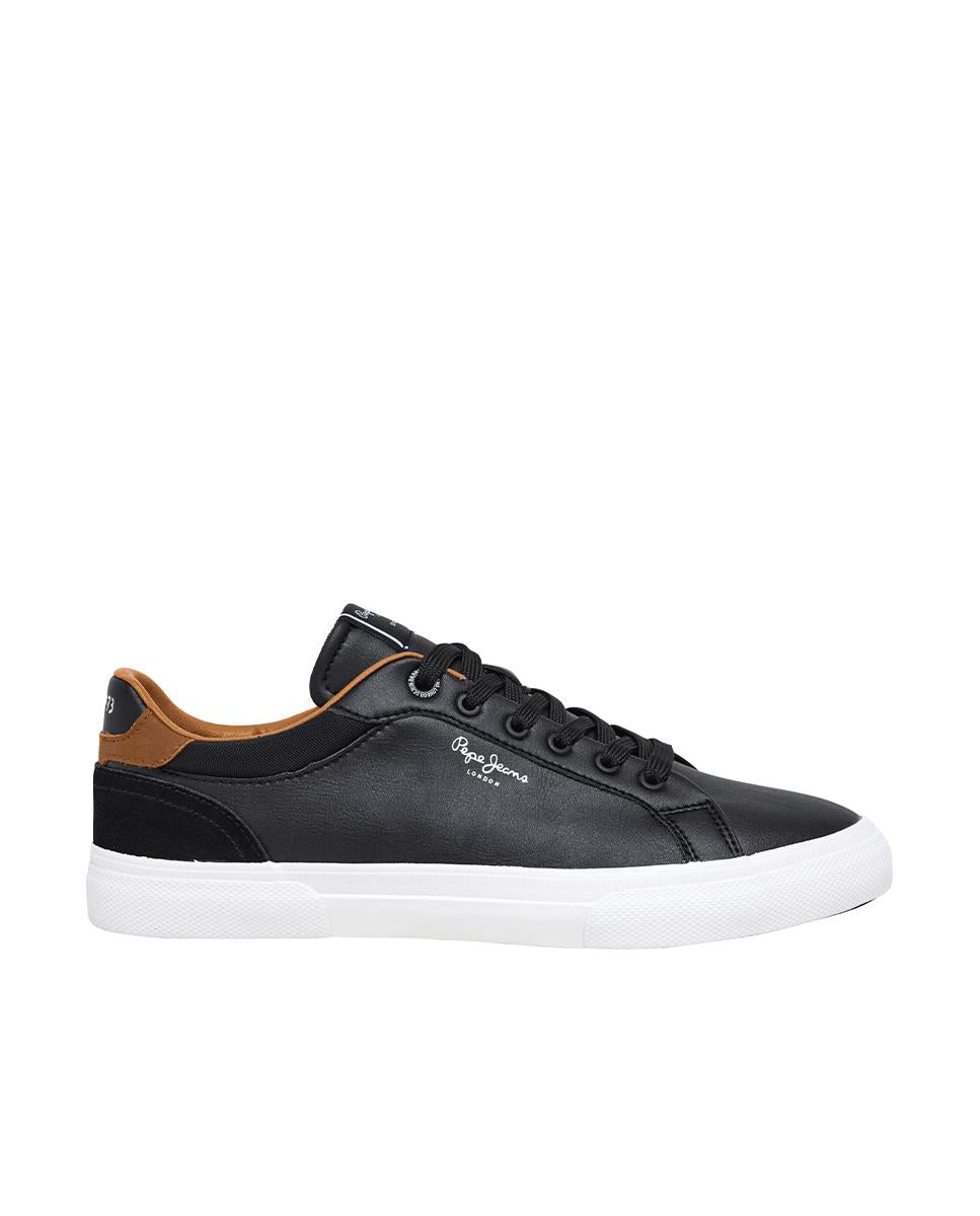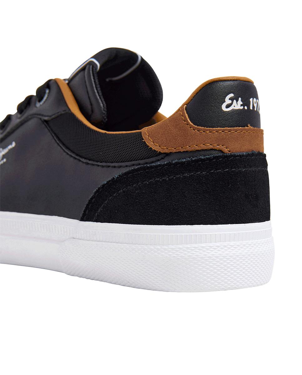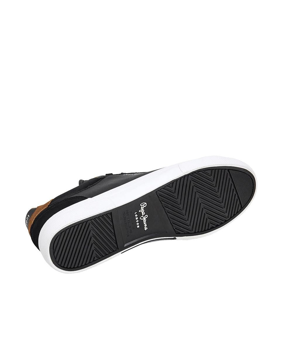 Estas zapatillas Pepe Jeans para hombre combinan piel sintética negra con detalles en ante color cuero y malla a juego para un estilo urbano sofisticado. Su diseño con punta redonda, cierre en cordones y caña acolchada ofrece confort y ajuste. La suela de goma de 2 cm y la plantilla de espuma garantizan comodidad todo el día. Elegancia para cualquier ocasión.