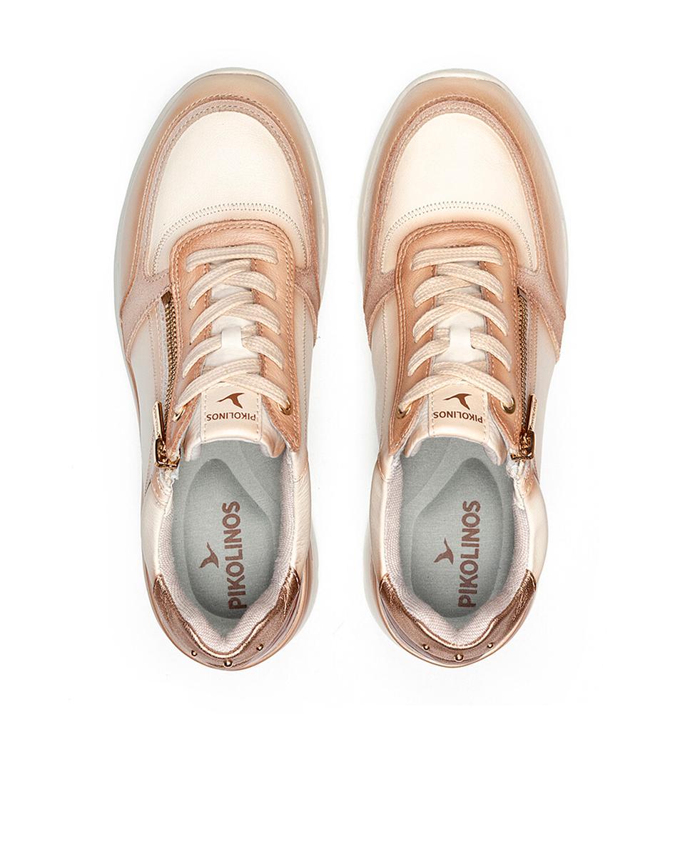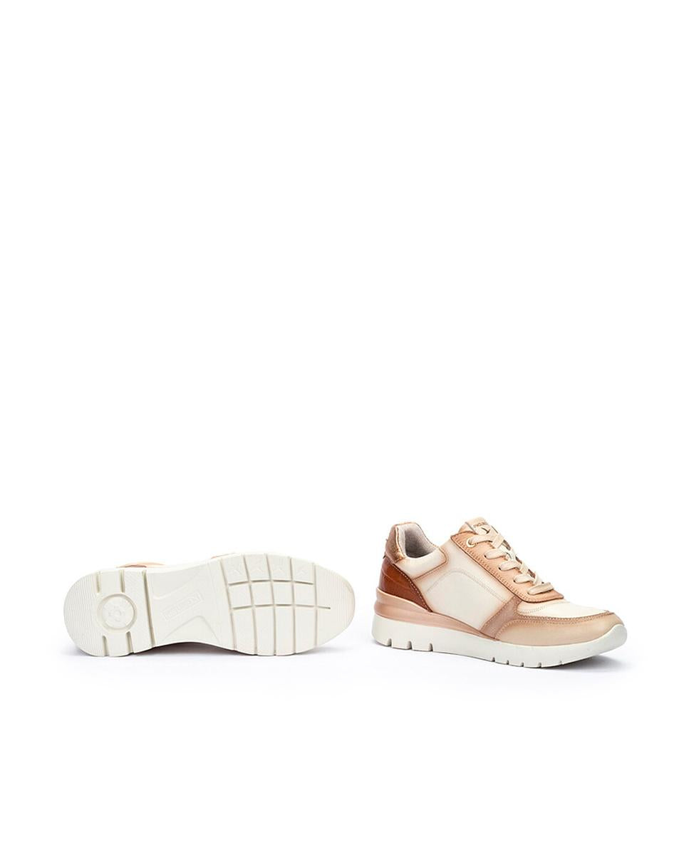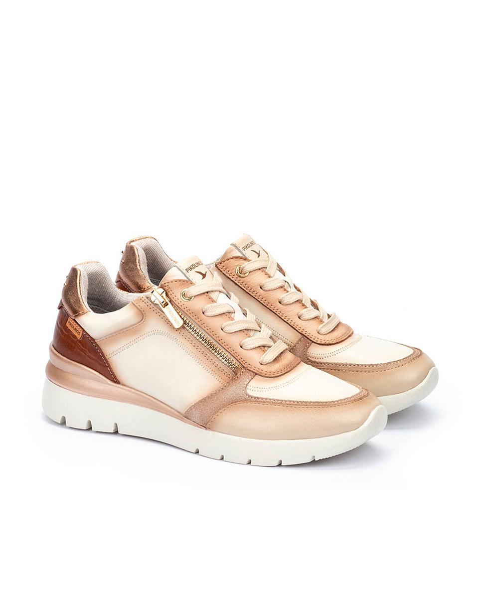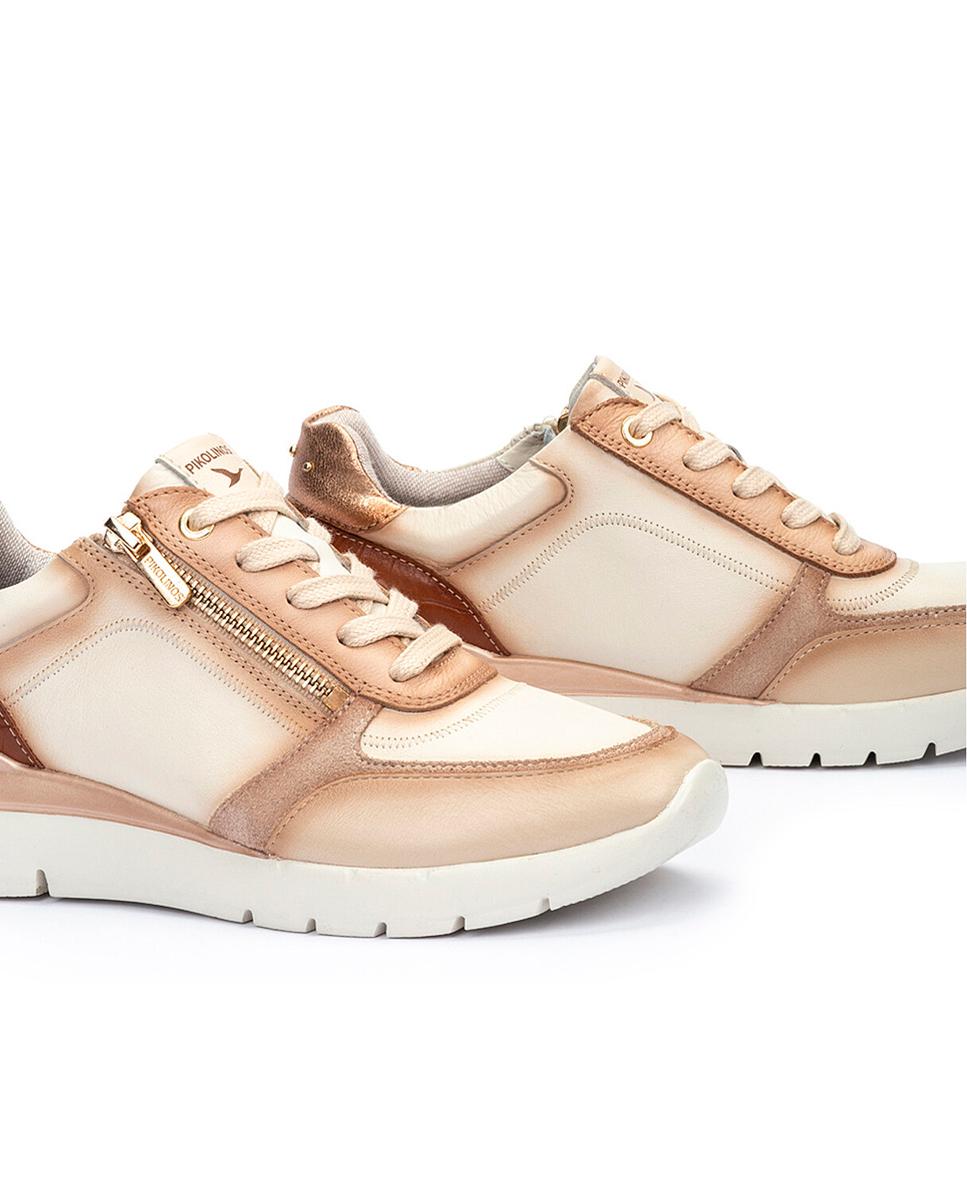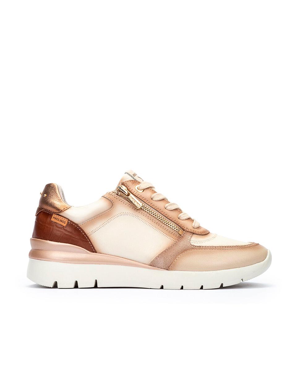 Zapatillas casuales para mujer de Pikolinos, pensadas para brindar estilo y comodidad a diario. Confeccionadas en piel en blanco con detalles dorados y marrones, cuentan con cierre de cordones y cremallera para mayor practicidad. Su suela extraligera de 4 cm y la tecnología Shock Comfort ofrecen flexibilidad, mientras la plantilla acolchada con memory foam garantiza confort total.