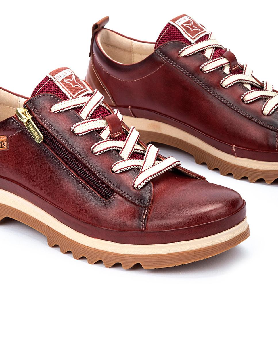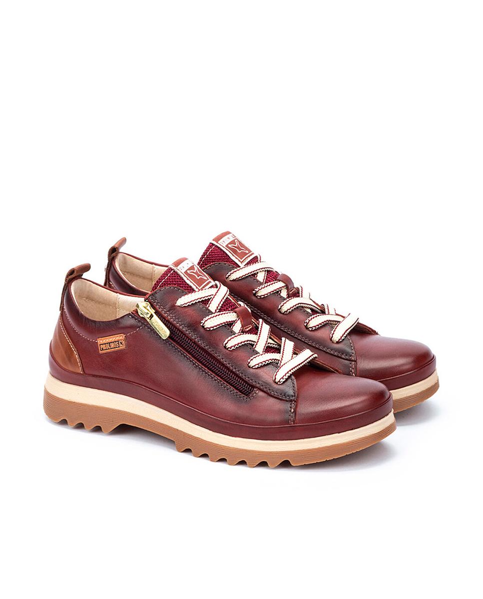 Zapatillas casuales para mujer de Pikolinos, pensadas para brindar estilo y comodidad a diario. Confeccionadas en piel en tono caoba con detalles dorados, cuentan con cierre de cordones y cremallera para mayor practicidad. Su suela extraligera de 4 cm y la tecnología Shock Comfort ofrecen flexibilidad, mientras la plantilla acolchada con memory foam garantiza confort total.