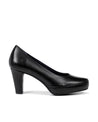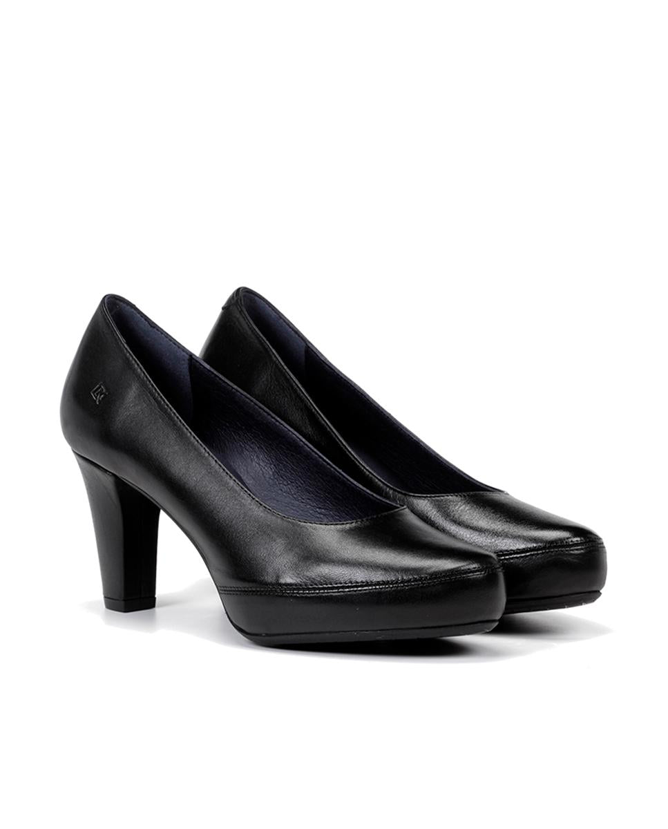 Zapatos de tacón para mujer con un diseño clásico y atemporal que combina elegancia y confort. Su parte superior de piel en color negro aporta sofisticación, mientras que el tacón de 6 cm con plataforma delantera de 2 cm ofrece estabilidad y comodidad durante todo el día. Un básico imprescindible para completar tus looks más especiales y elegantes.