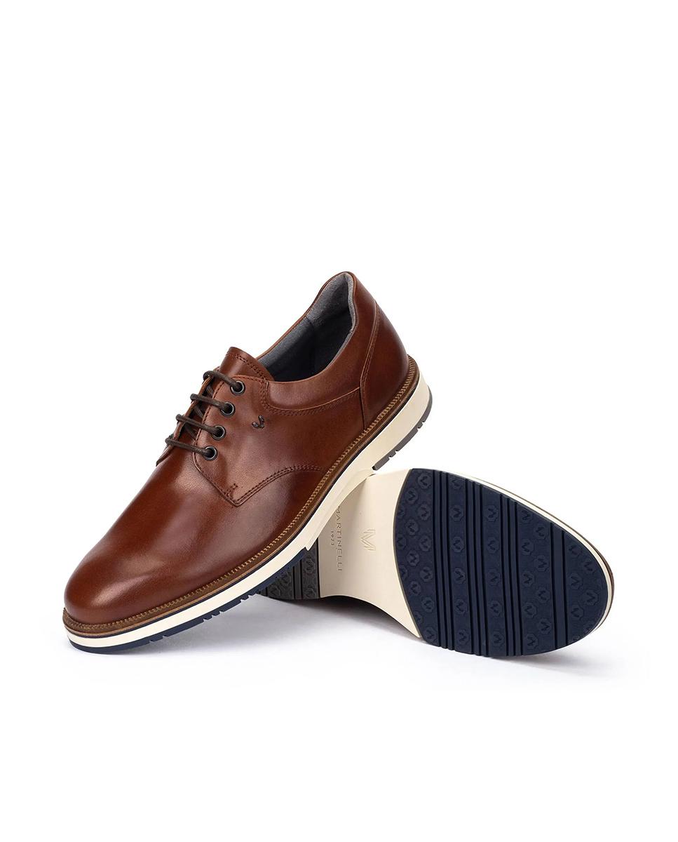 Zapatos para hombre de Martinelli con diseño Oxford, perfectos para un look casual con un toque elegante. Están hechos en serraje marrón y cuentan con una suela de goma de 2 cm que garantiza comodidad y agarre. Incluyen un detalle marrón en la entresuela que aporta contraste y una plantilla acolchada para mayor confort.