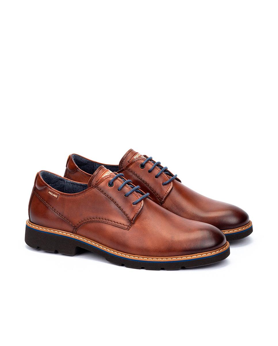 Zapatos de vestir para hombre de Pikolinos confeccionados en piel color marrón. Con diseño estilo oxford y cierre con cordones, ofrecen una estética clásica y elegante. La suela de 3 cm de altura proporciona confort sin perder sofisticación. Un modelo versátil y refinado, perfecto para acompañarte en ocasiones formales o en tu día a día profesional.