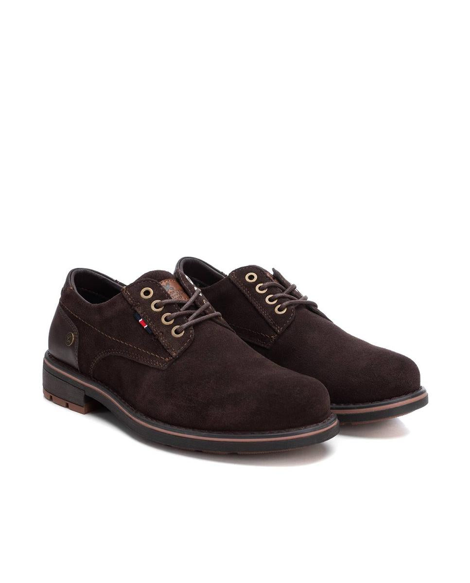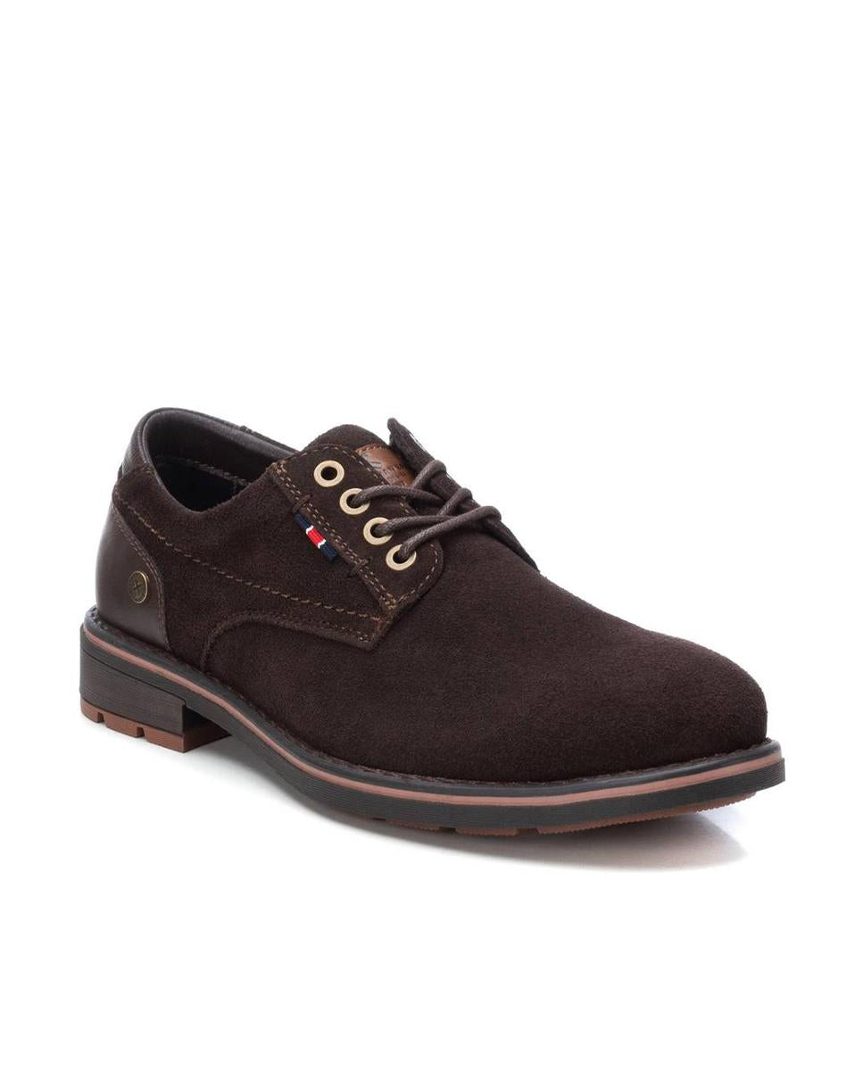 Zapato Oxford para hombre de Xti en serraje marrón intenso, con cordones ajustables que garantizan un calce perfecto. Su suela de goma antideslizante ofrece comodidad y seguridad en cada paso. Un diseño clásico y versátil, ideal como básico imprescindible para esta temporada, combinando estilo, funcionalidad y elegancia en el día a día.