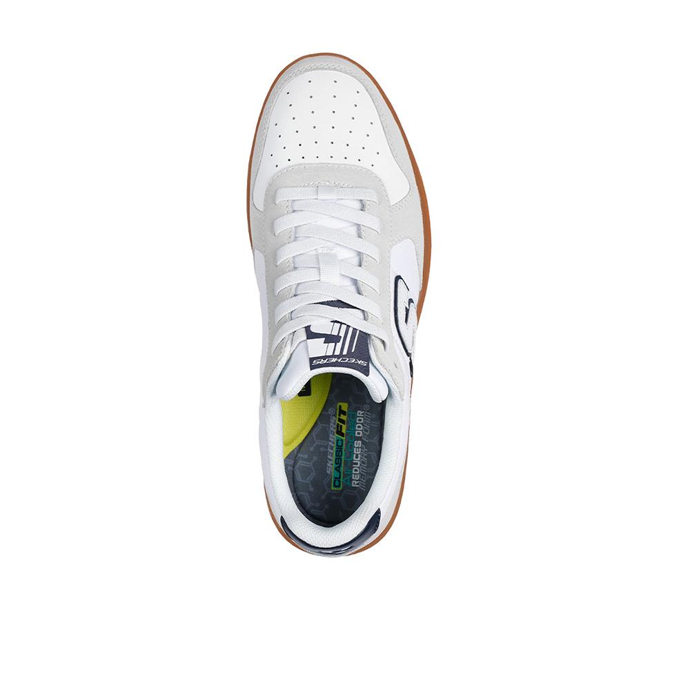 Con Skechers, disfruta de un clásico deportivo renovado y diseñado para ofrecer la máxima comodidad. Este modelo combina una parte superior de piel y malla en elegante color blanco, con capas superpuestas de ante y detalles en negro y gris, aportando estilo y versatilidad. Sus cordones elásticos facilitan un ajuste perfecto, mientras que la plantilla memory foam con carbón vegetal neutraliza los posibles olores para que tus pies se sientan frescos todo el día. La suela flexible con tracción y su altura de 2,5 cm garantizan cada paso, fusionando estilo y funcionalidad en un modelo ideal para cualquier ocasión.