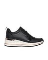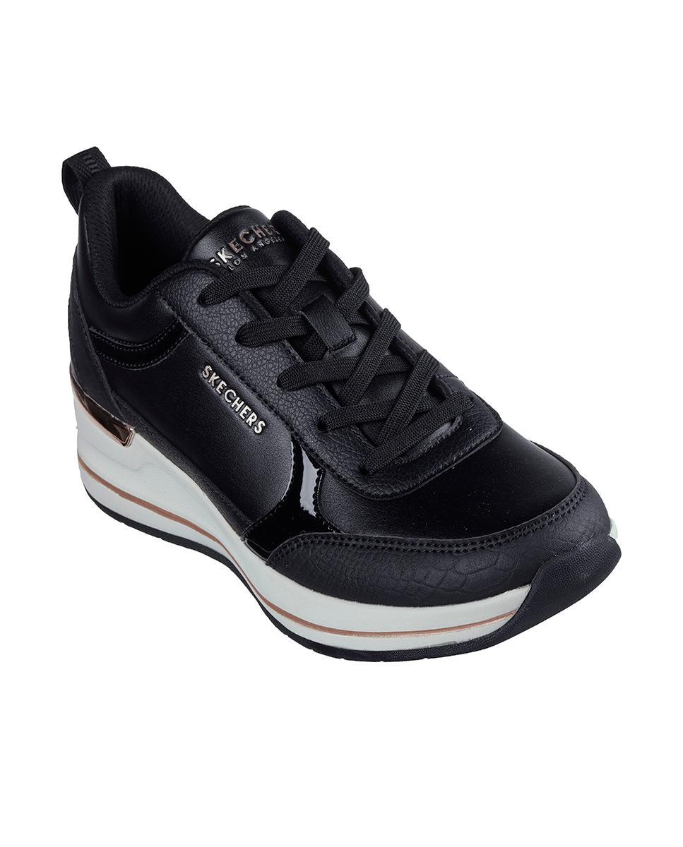 Presume de estilo con estas zapatillas Skechers en color negro, con parte superior sintética y detalle texturizado en la puntera. La plantilla Memory Foam ofrece confort duradero y la cuña de 5 cm aporta altura con elegancia. Su suela de goma flexible con tracción garantiza estabilidad en cada paso. Un diseño versátil para destacar con comodidad.