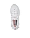 Zapatillas casuales para mujer de Skechers en color blanco, con diseño deportivo y cordones. Parte superior de piel lisa y material sintético que aporta un look moderno y versátil. Plantilla con amortiguación Memory Foam para máxima comodidad. Suela de goma flexible con tracción y media suela ligera con absorción de impactos. Altura de 3 cm. Perfectas para el uso diario.