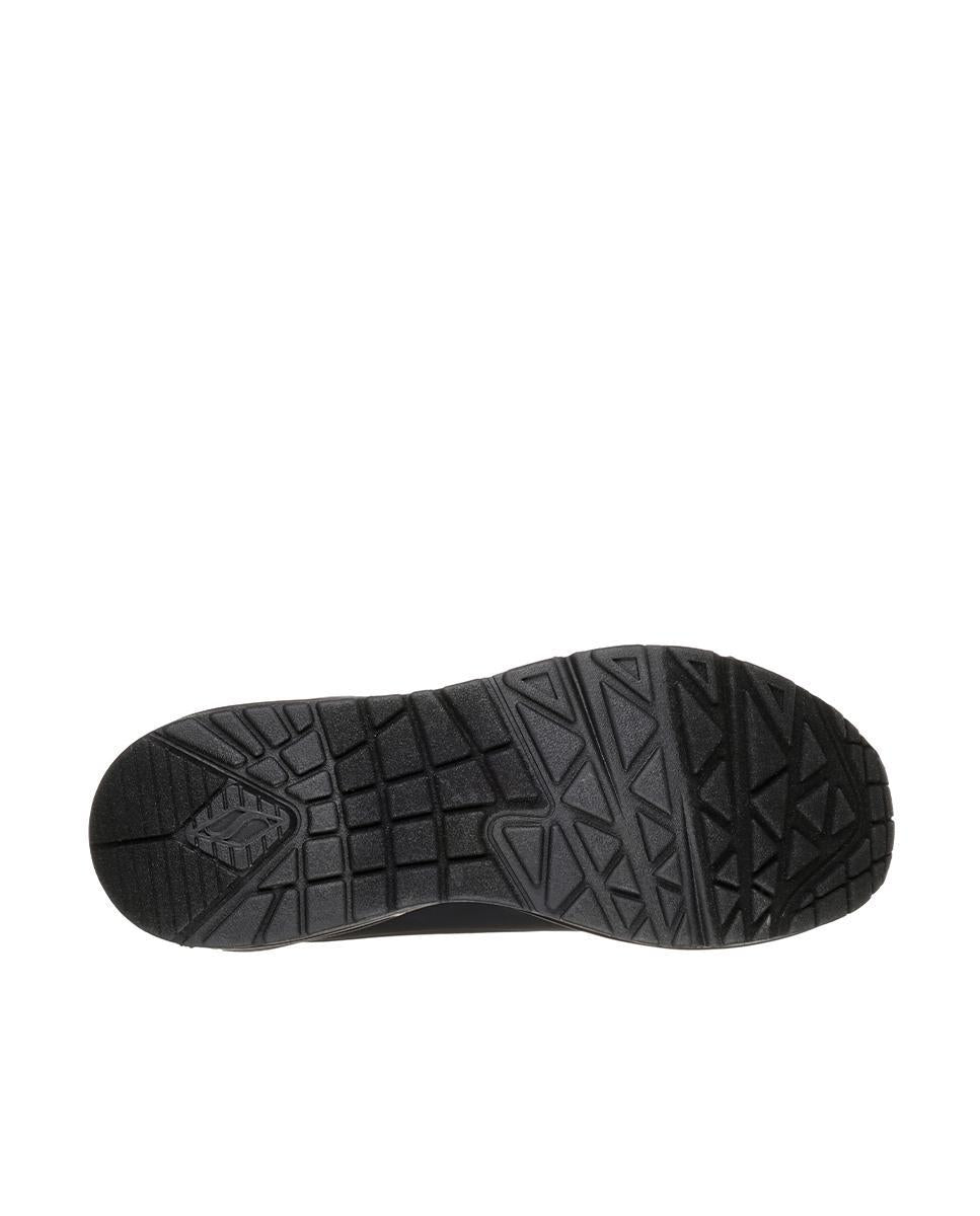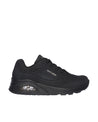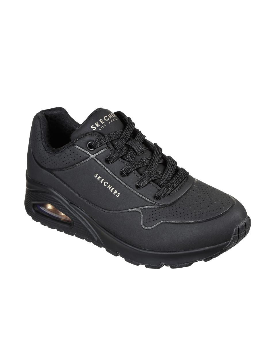 Marca la diferencia con estas zapatillas deportivas Skechers para mujer en elegante negro. Su parte superior de piel sintética lisa y perforada favorece la transpiración, mientras que la plantilla de foam acolchada garantiza comodidad diaria. Con cámara de aire visible en la media suela negra para amortiguación, suela flexible con tracción versátil y cuña de 4 cm, ofrecen estilo, confort y funcionalidad.