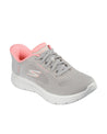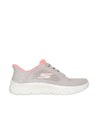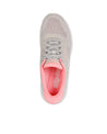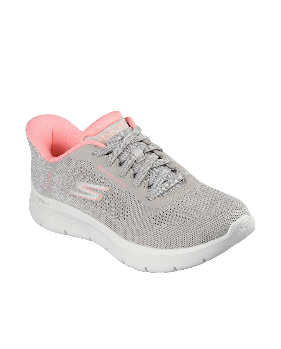 Estas zapatillas deportivas de Skechers para mujer combinan comodidad, estilo y conciencia ecológica. Hechas con materiales veganos, su parte superior de punto moteado color gris con toques de rosa es transpirable y se ajusta perfectamente al pie. Cuentan con cordones elásticos fijos, plantilla Memory Foam y amortiguación ligera para mayor confort. Su suela de 3 cm ofrece estabilidad en cada paso.