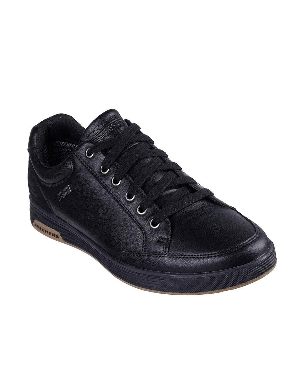 Combina elegancia y protección con estos zapatos impermeables en color negro. Confeccionados en piel sintética suave, destacan por su ribete marrón en el talón y su diseño con costuras selladas. La plantilla acolchada de foam brinda comodidad duradera, mientras que el cierre de cordones asegura un ajuste perfecto. Con 2 cm de altura, son ideales para cualquier ocasión.