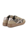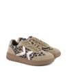 Zapatillas en piel de serraje sintético color camel, con un llamativo estampado de leopardo y detalles en dorado que aportan un toque audaz y sofisticado. Piso plano de 3 cm de altura para una pisada cómoda y segura. Forro interior en textil que garantiza transpirabilidad, y plantilla en material sintético para mayor confort durante todo el día. Ideales para quienes buscan estilo y comodidad con un toque salvaje.
