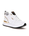 Descubre las zapatillas Guess para mujer, un clásico reinventado con estilo. Hechas en piel sintética blanca, destacan por sus detalles dorados y el icónico estampado marrón en la parte trasera. Con punta redonda, ojales metalizados y dijes decorativos, aportan un toque sofisticado. Suela de goma y plataforma de 3?cm para máxima comodidad y un look estilizado.